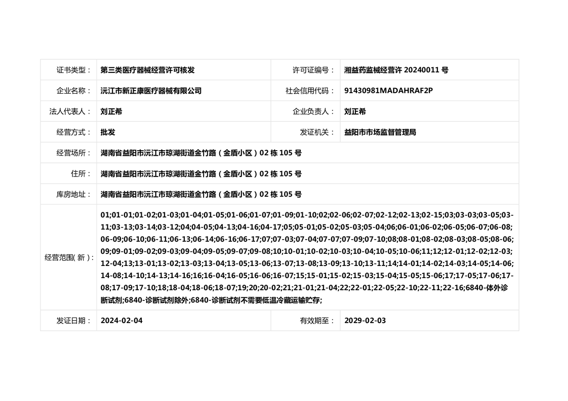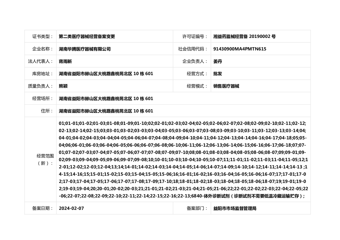 | 医疗器械生产经营许可(备案)信息公示(2024年第06号) |
