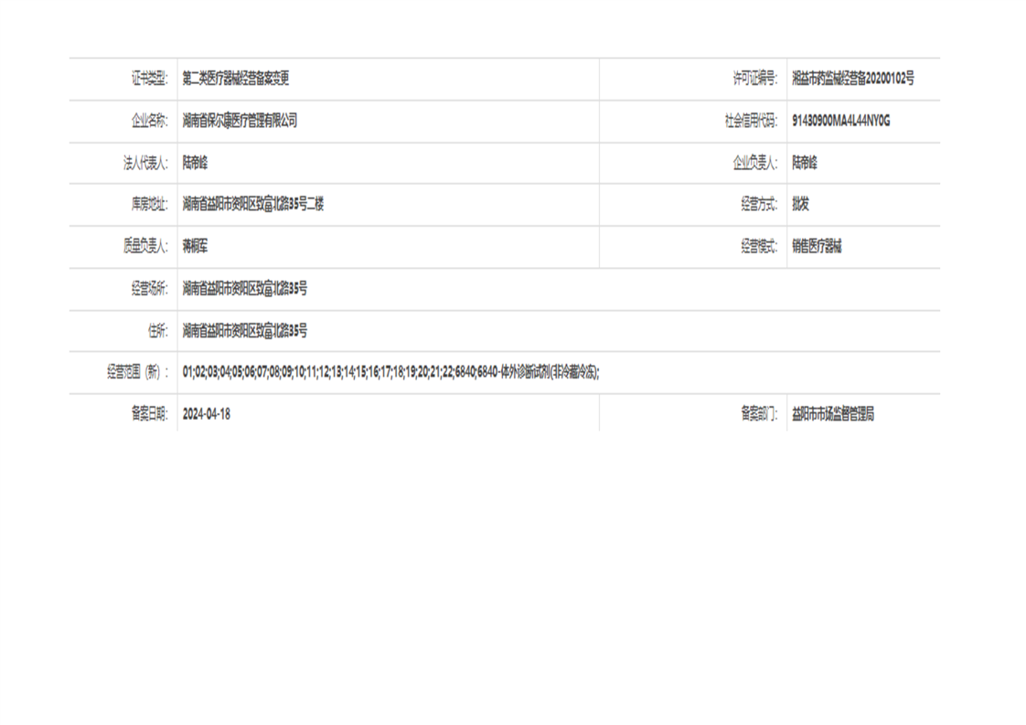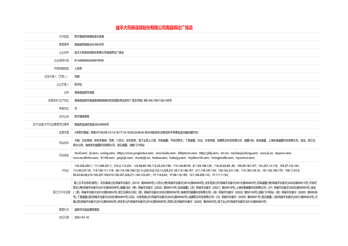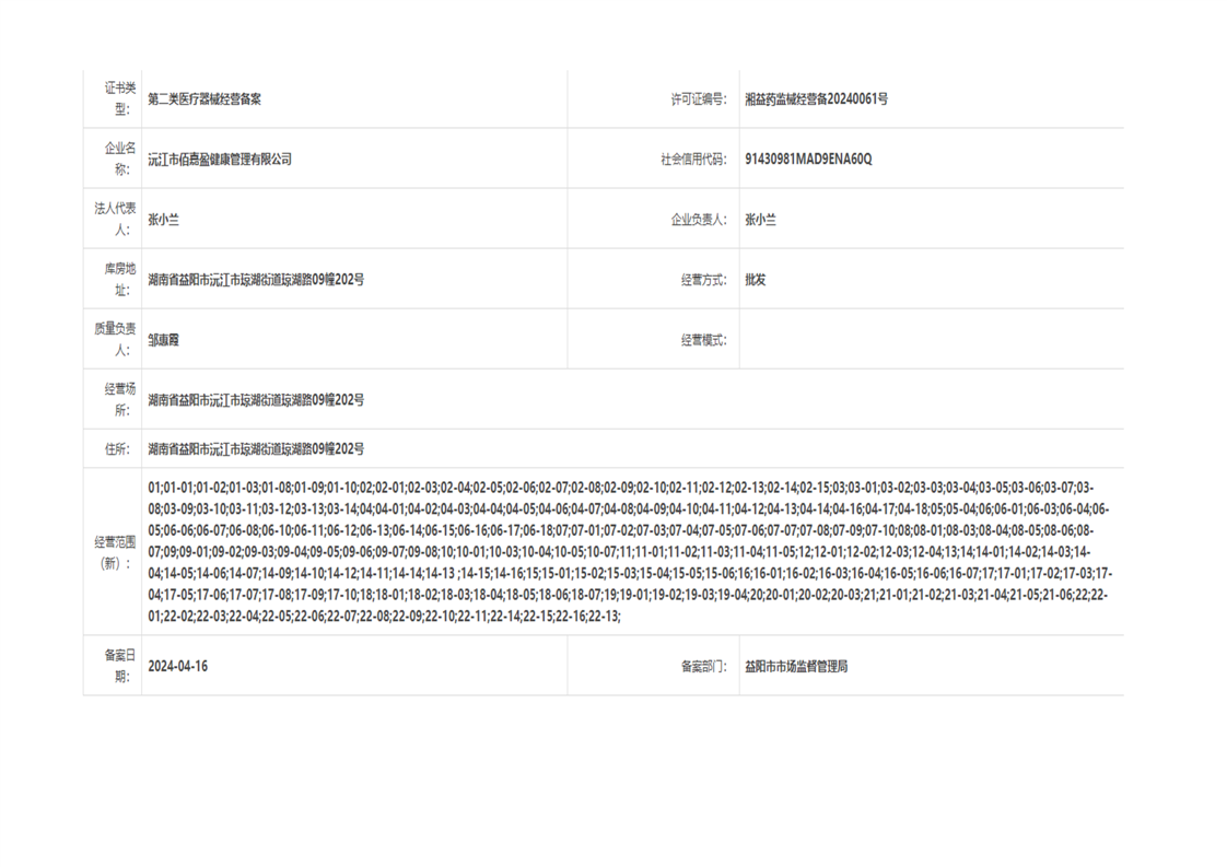 | 医疗器械生产经营许可(备案)信息公示(2024年第16号) |