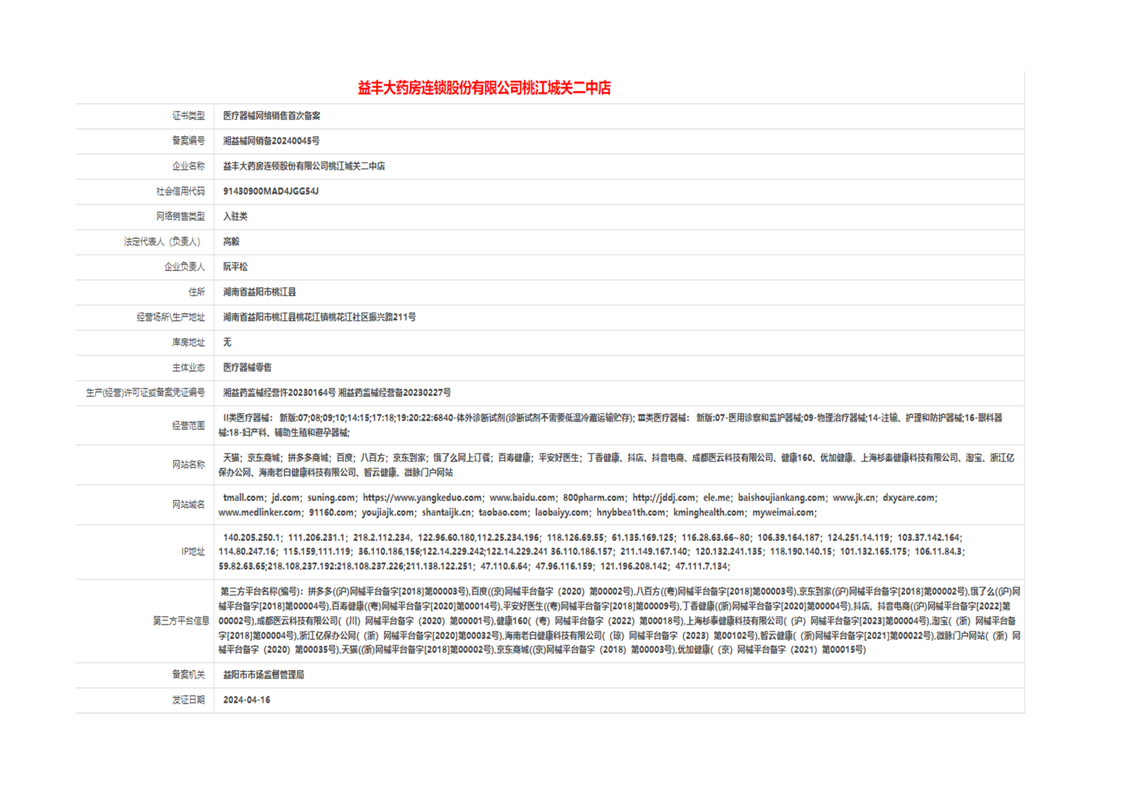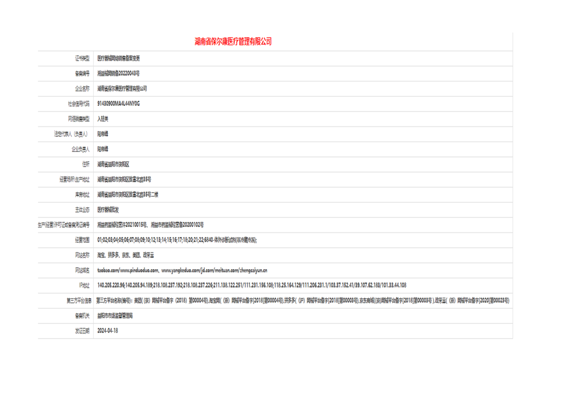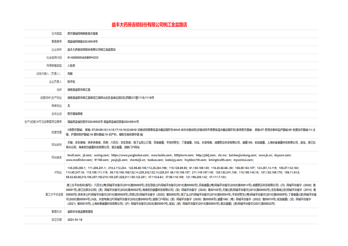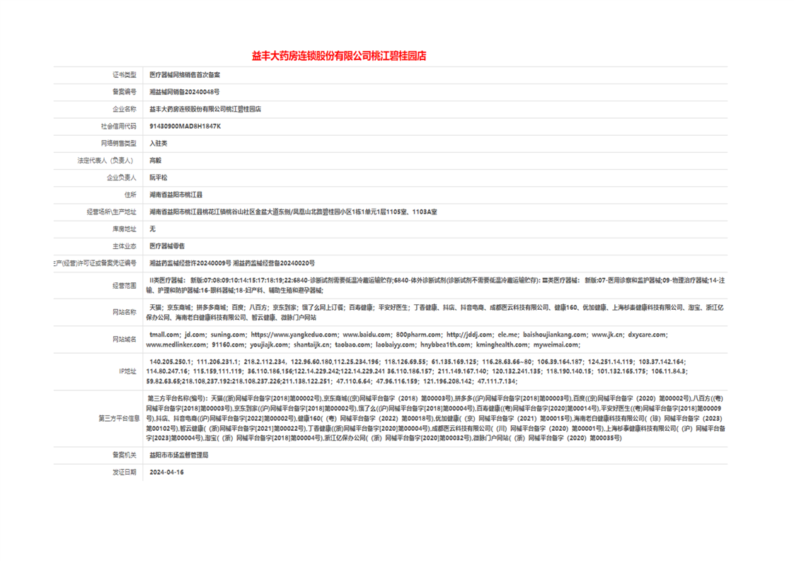 | 医疗器械生产经营许可(备案)信息公示(2024年第16号) |