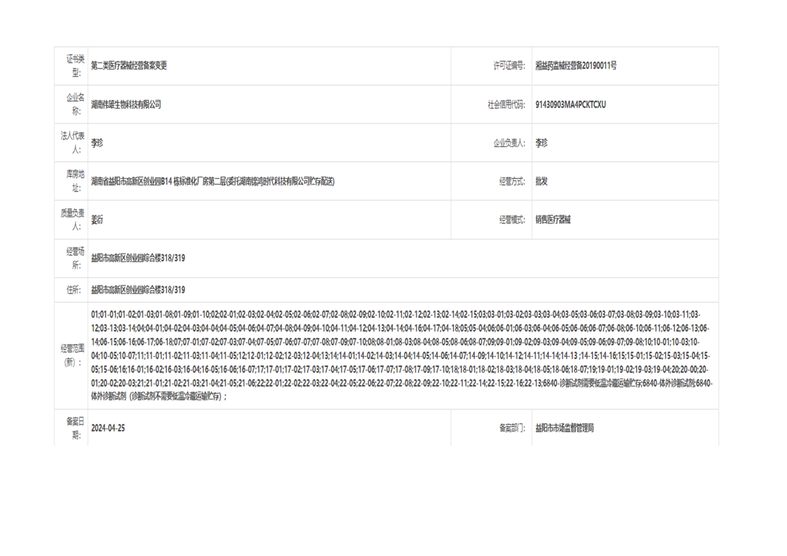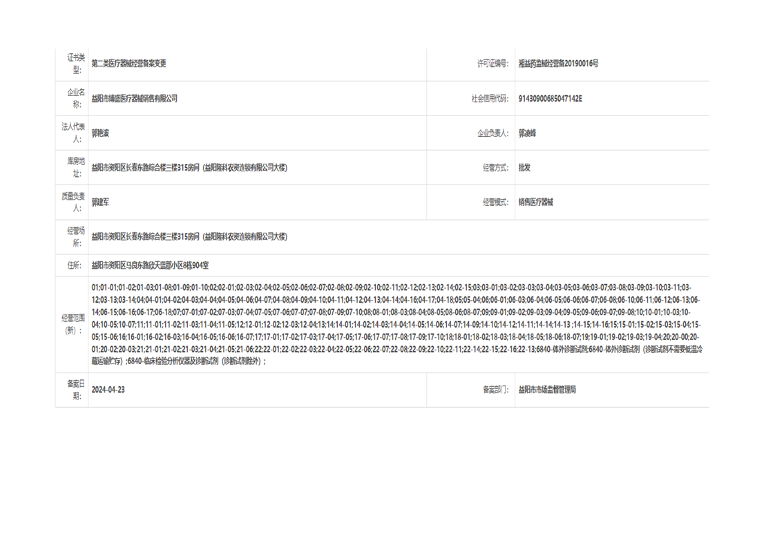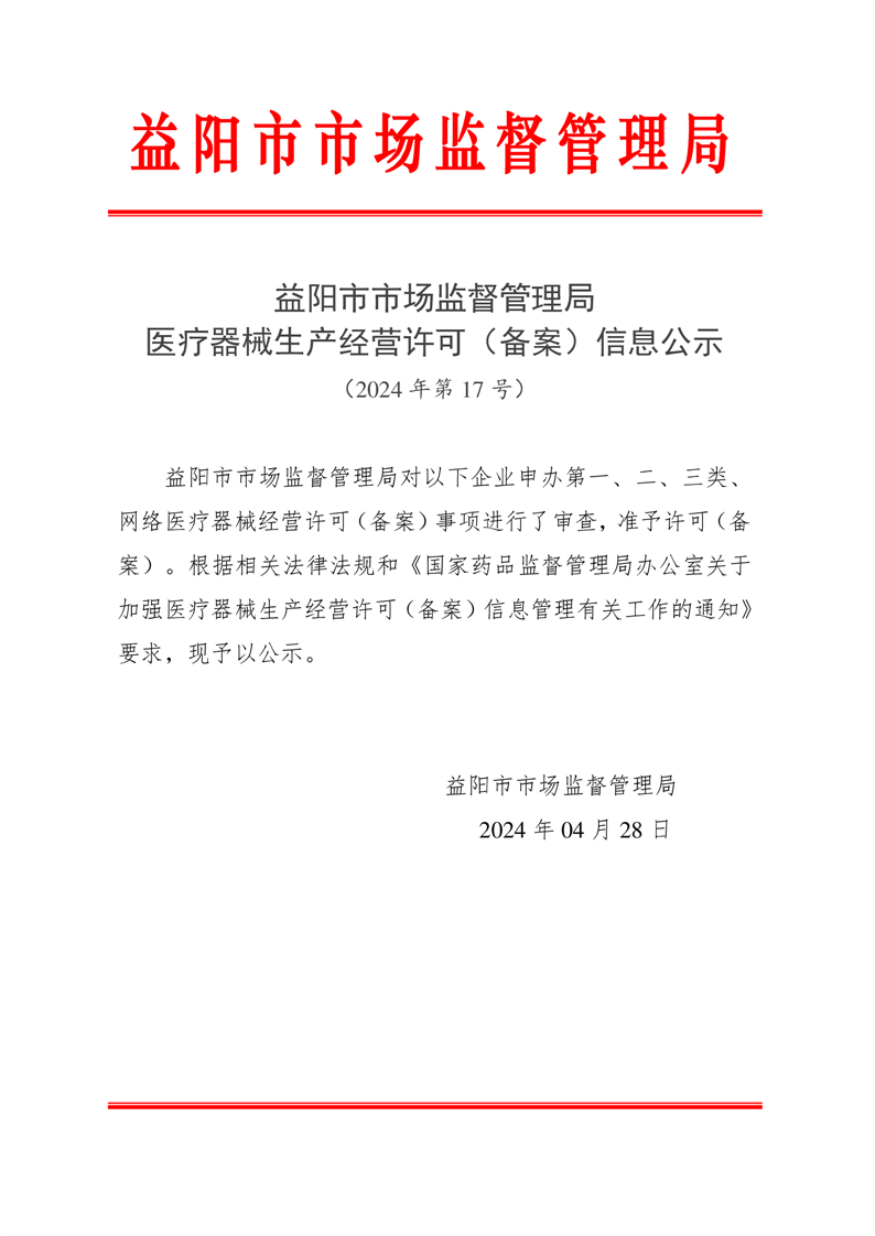 | 医疗器械生产经营许可(备案)信息公示(2024年第17号) |