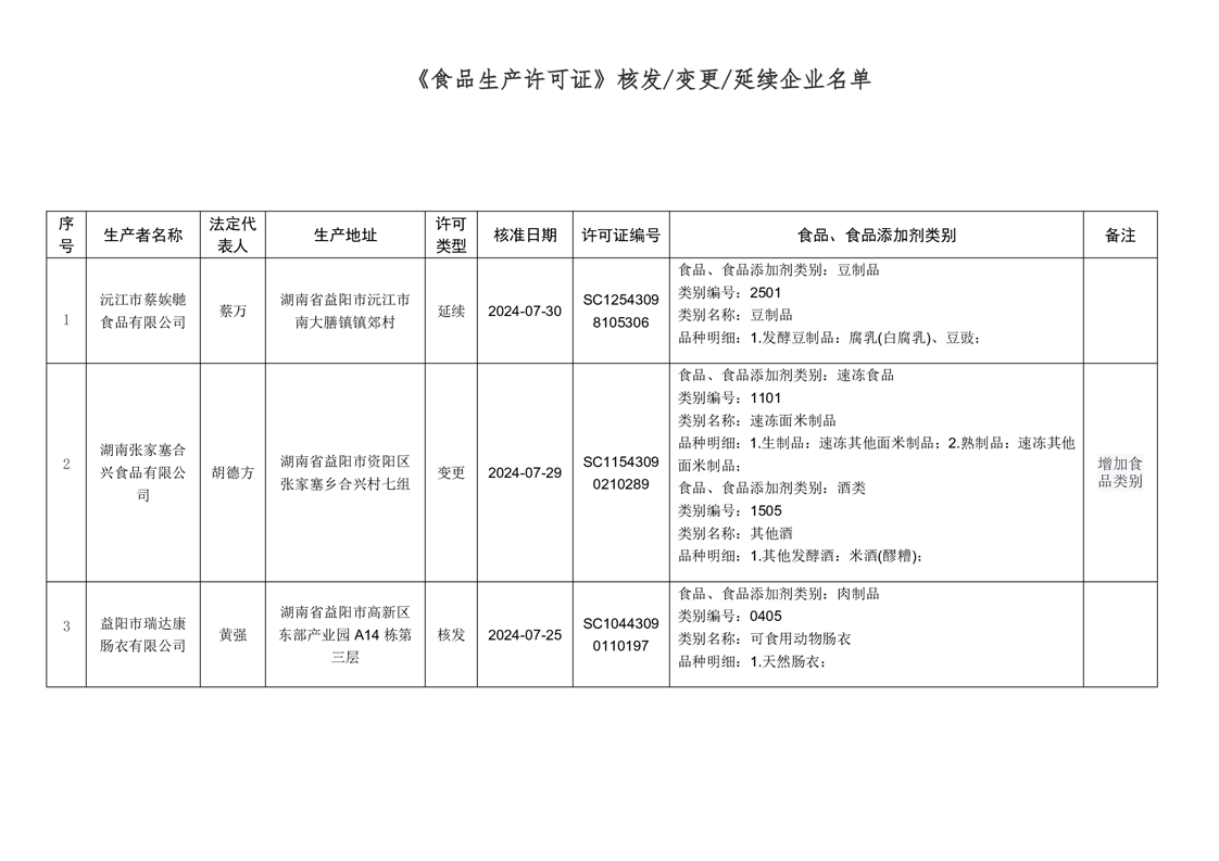 | 2024年第07期《食品生产许可证》核发/变更/延续公告 |