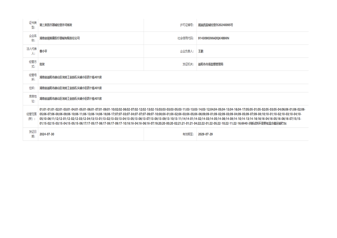 | 医疗器械生产经营许可(备案)信息公示(2024年第30号) |