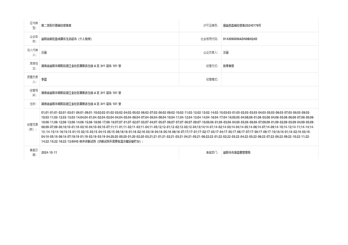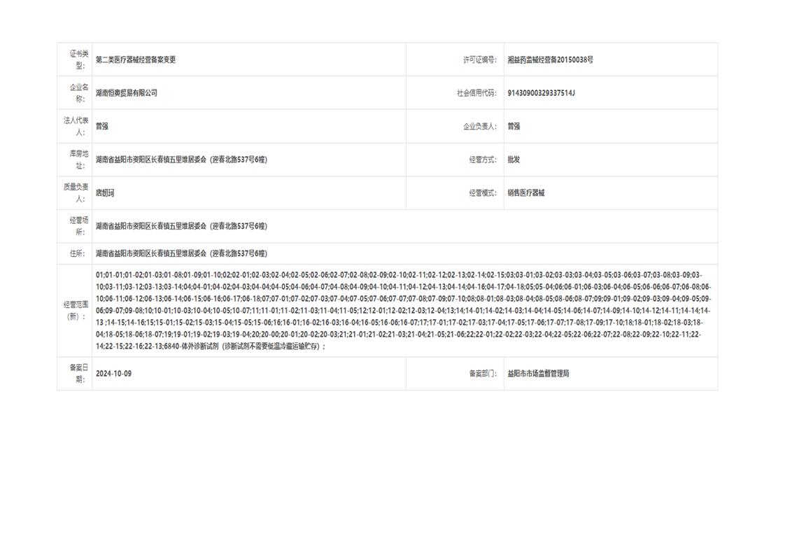 | 医疗器械生产经营许可(备案)信息公示(2024年第39号) |