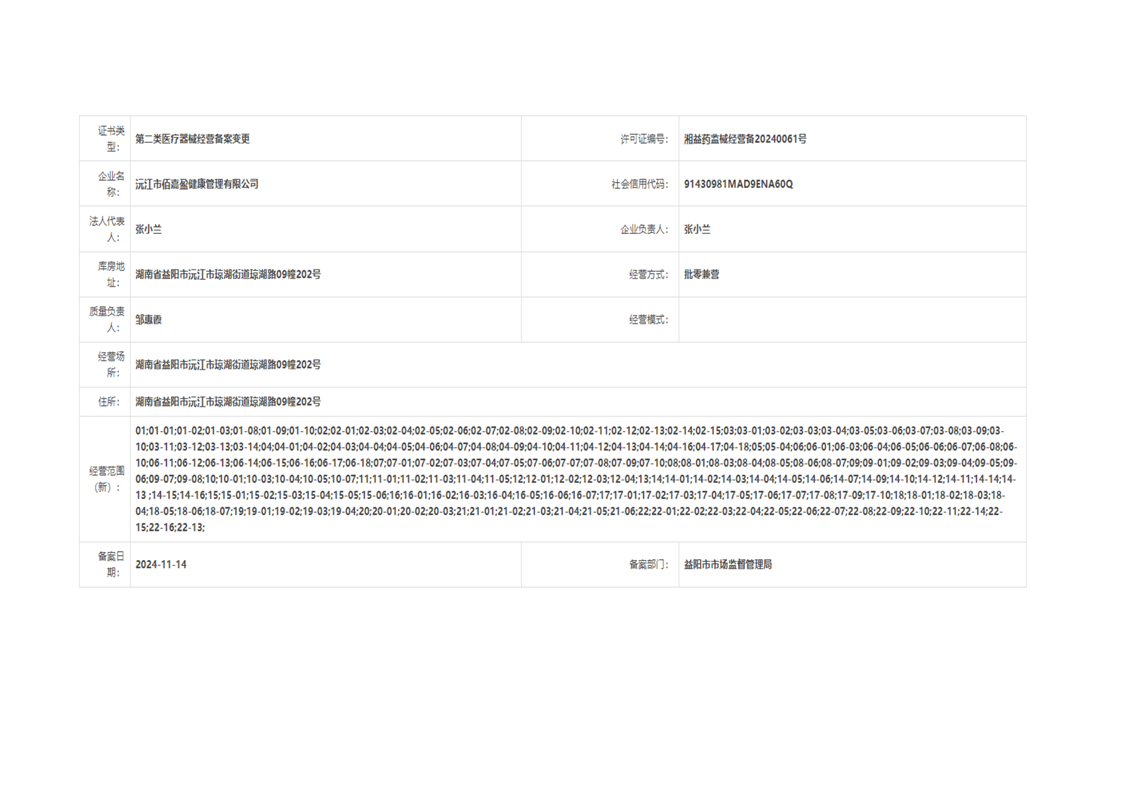 | 医疗器械生产经营许可(备案)信息公示(2024年第43号) |