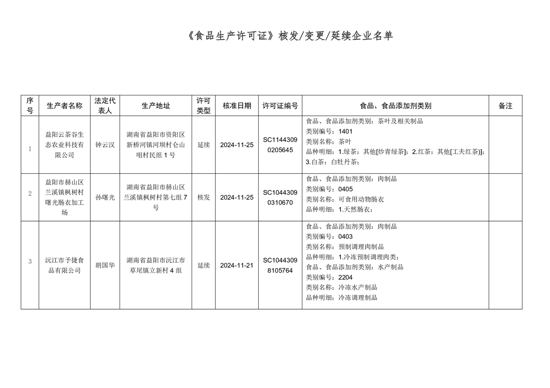 | 2024年第11期《食品生产许可证》核发/变更/延续公告 |