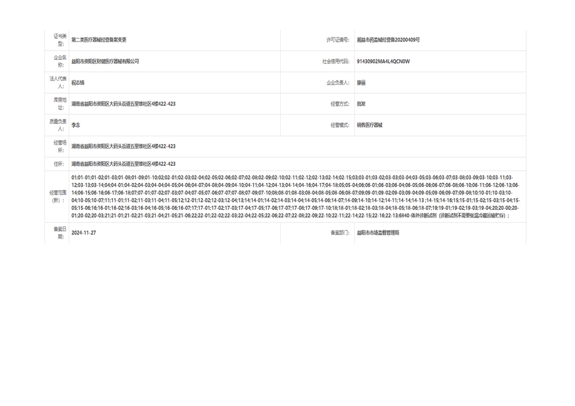 | 医疗器械生产经营许可(备案)信息公示(2024年第45号) |