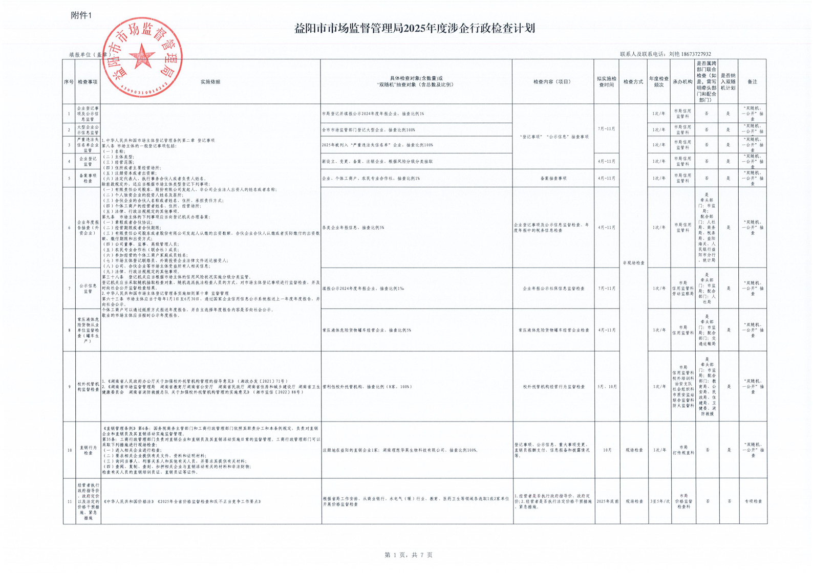 | 益阳市市场监督管理局2025年度涉企行政检查计划 |