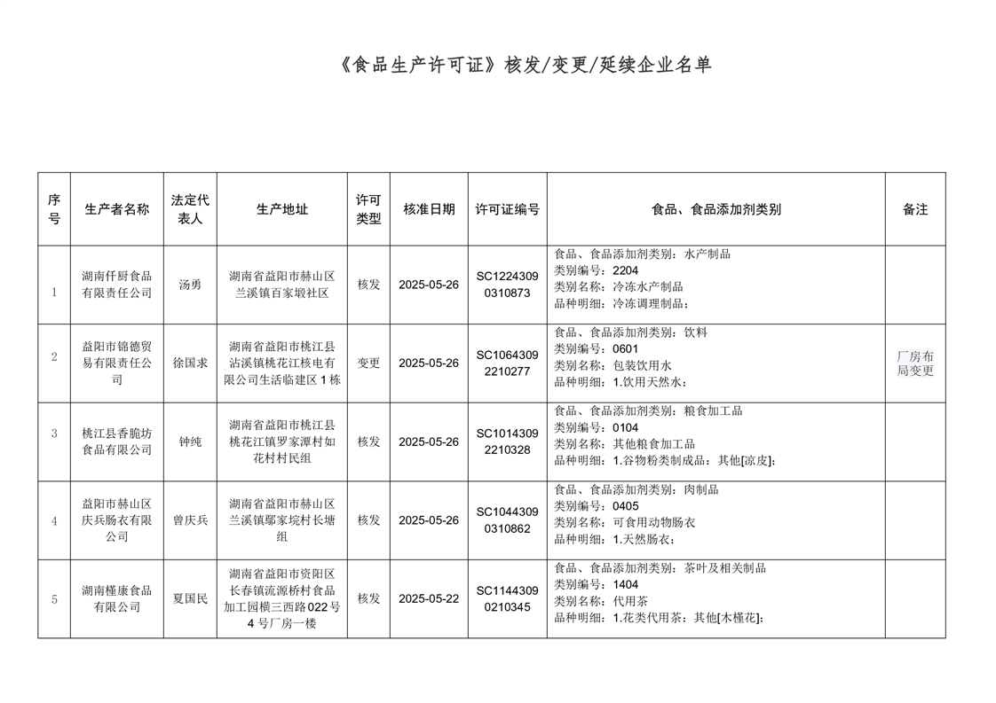 | 2025年第05期《食品生产许可证》核发/变更/延续公告 |