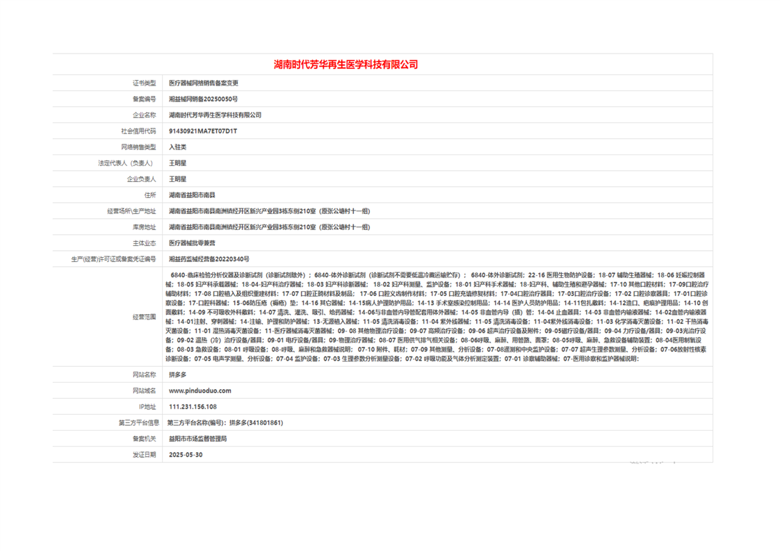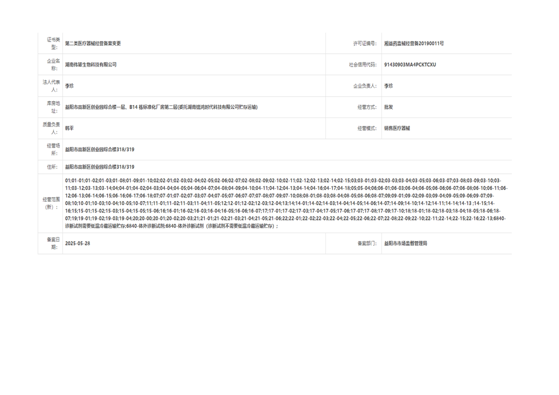 | 医疗器械生产经营许可(备案)信息公示(2025年第20号) |