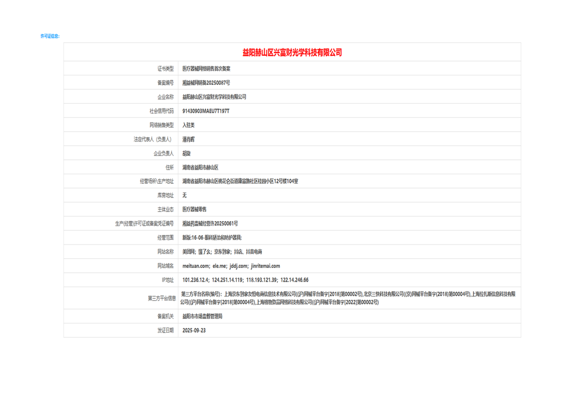 | 医疗器械生产经营许可(备案)信息公示(2025年第37号) |