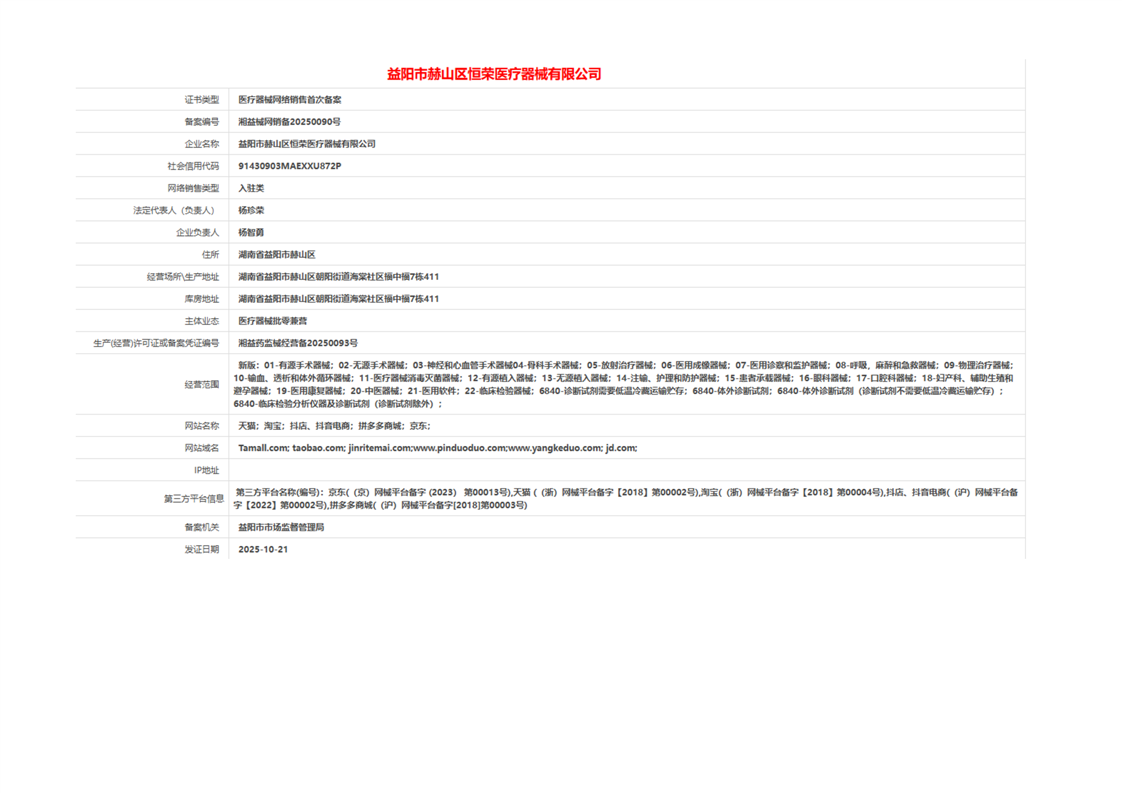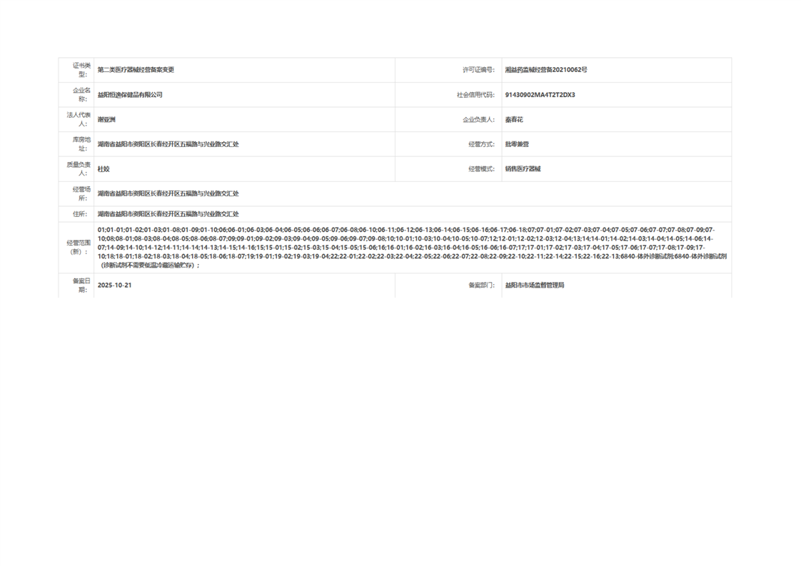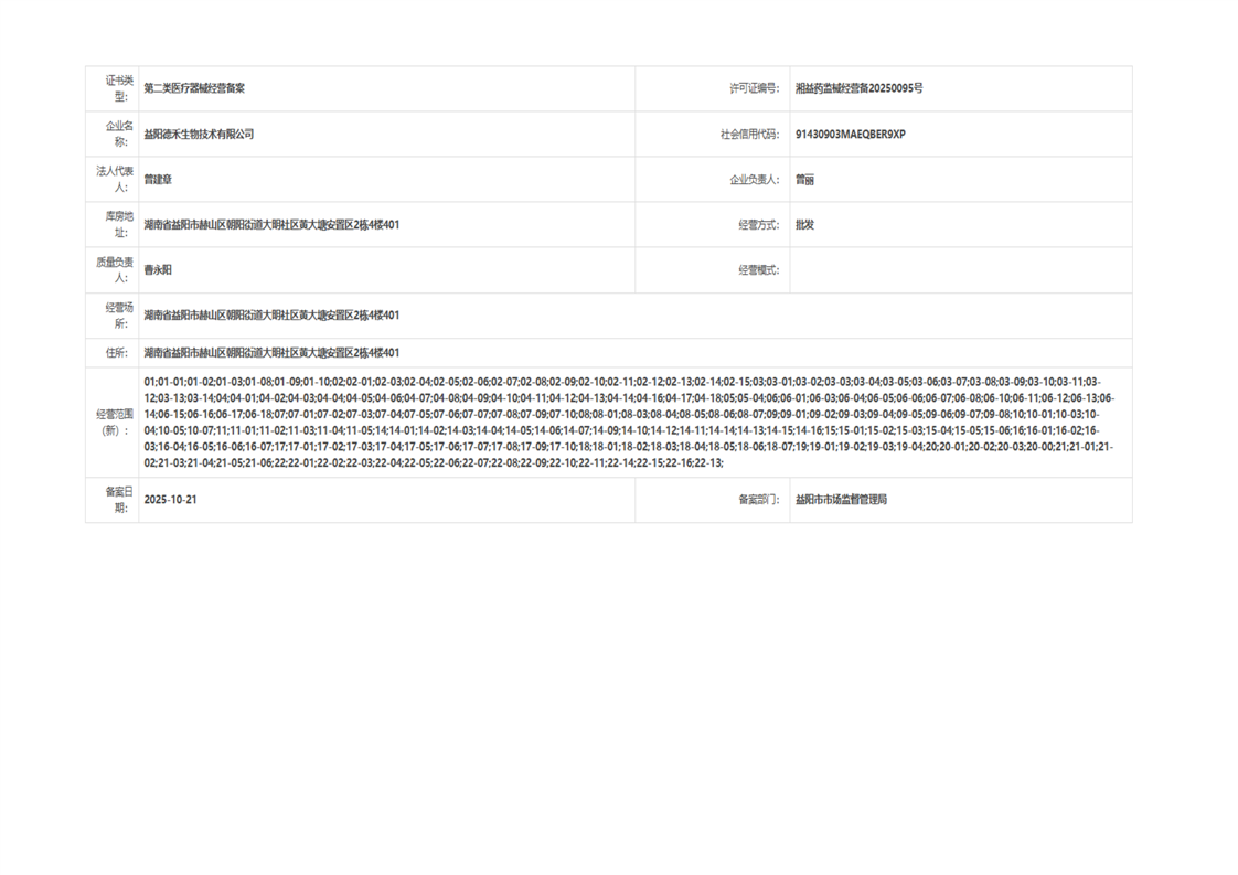 | 医疗器械生产经营许可(备案)信息公示(2025年第40号) |