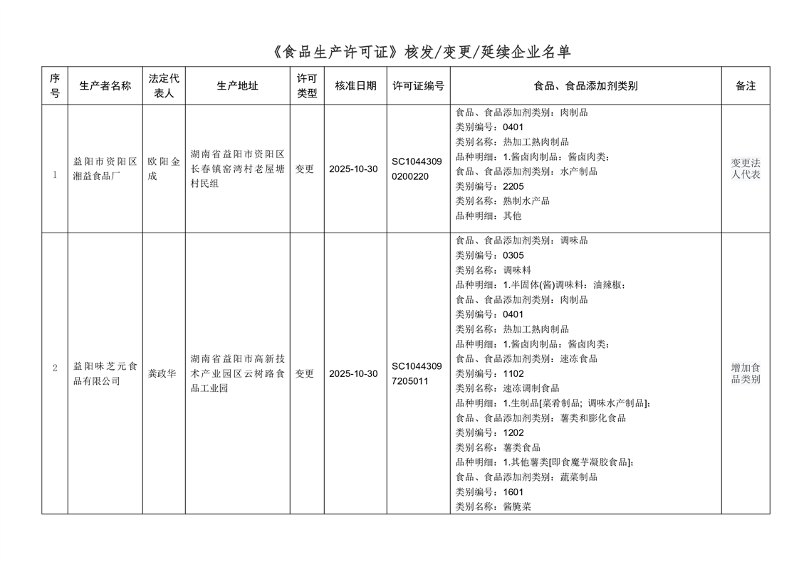 | 2025年第10期《食品生产许可证》核发/变更/延续公告 |