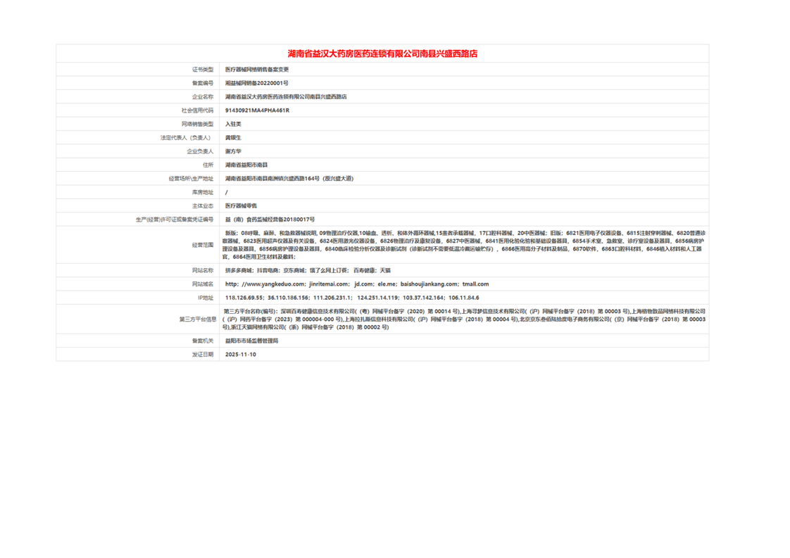 | 医疗器械生产经营许可(备案)信息公示(2025年第43号) |