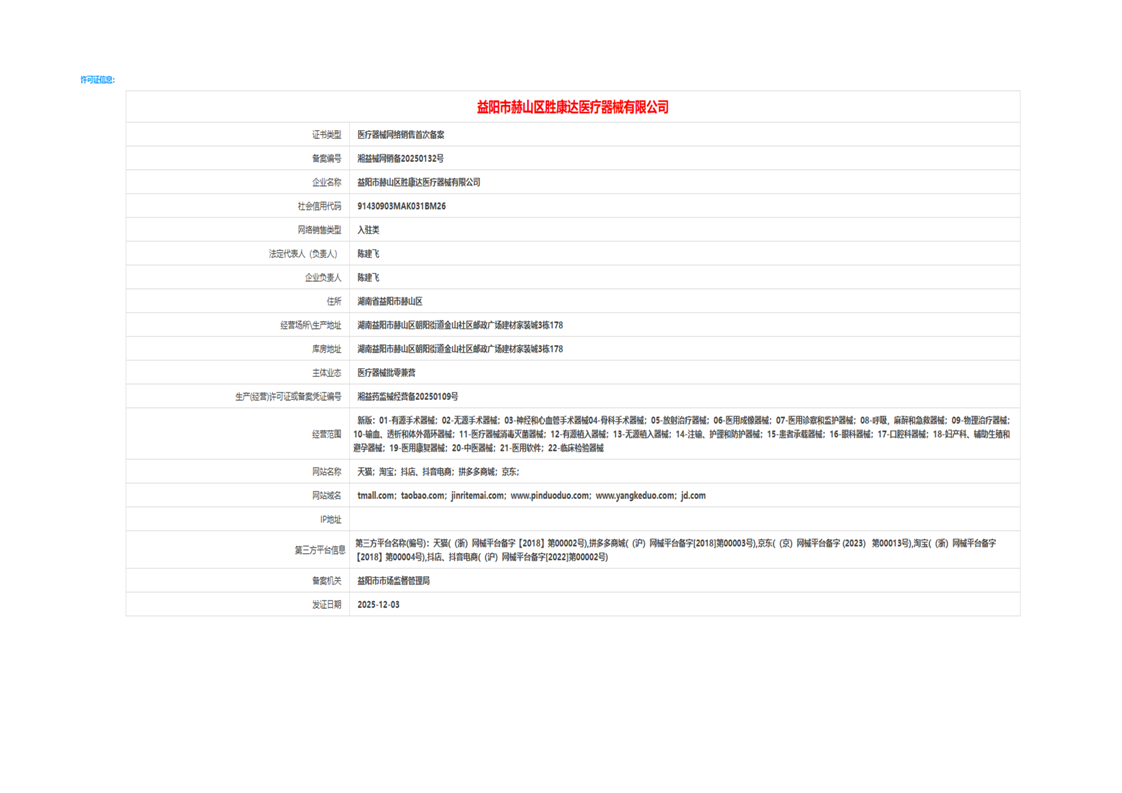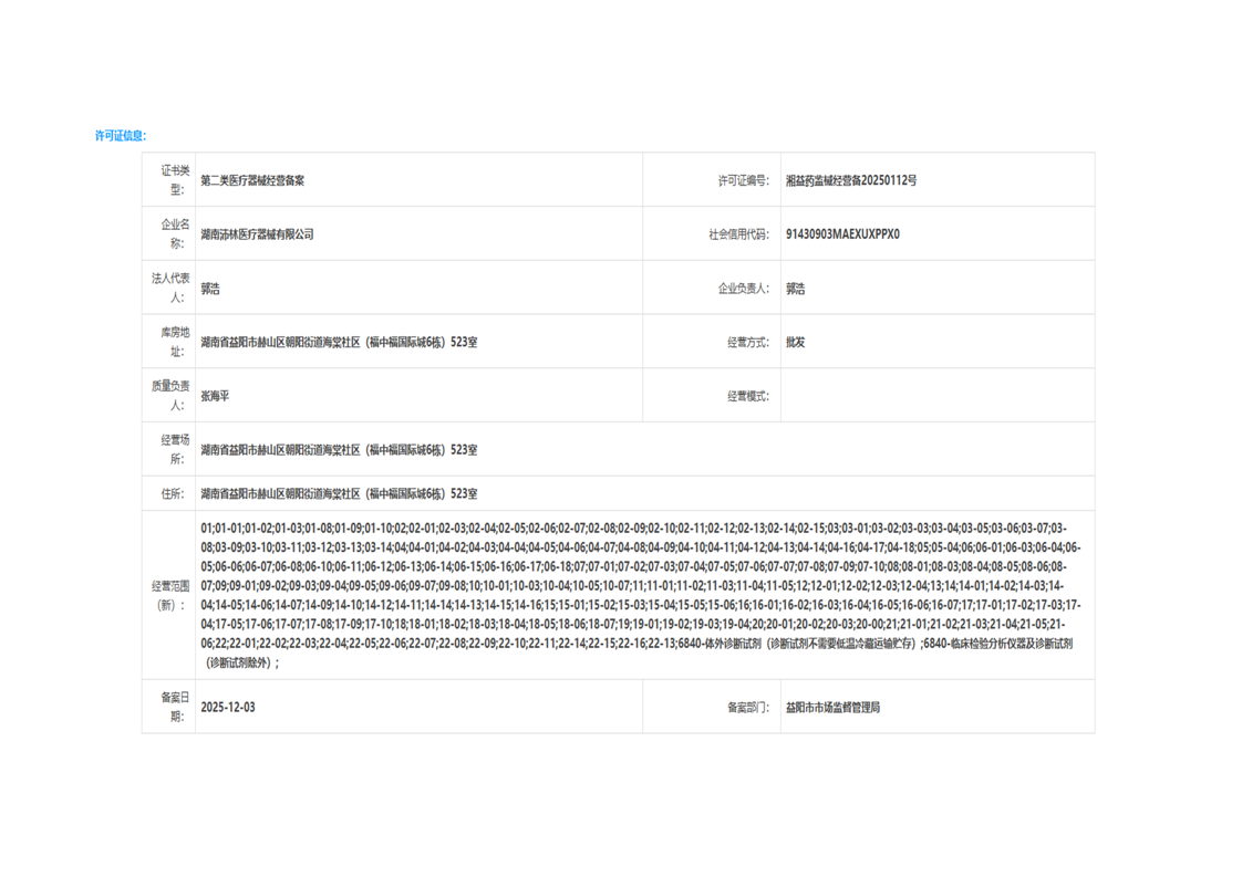 | 医疗器械生产经营许可(备案)信息公示(2025年第46号) |