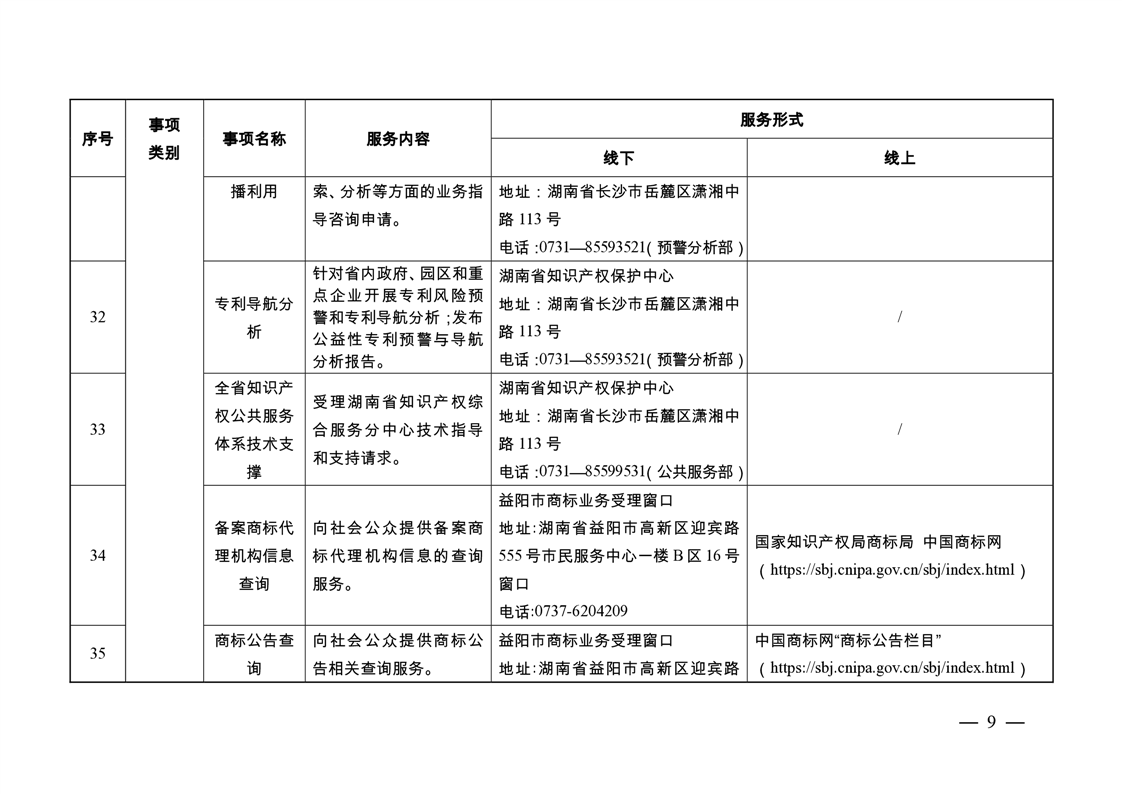 | 益阳市知识产权公共服务事项清单(第一版) |