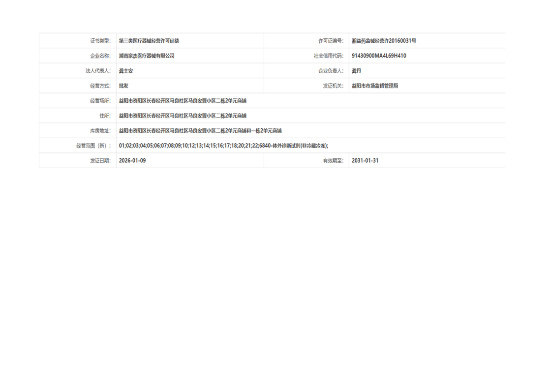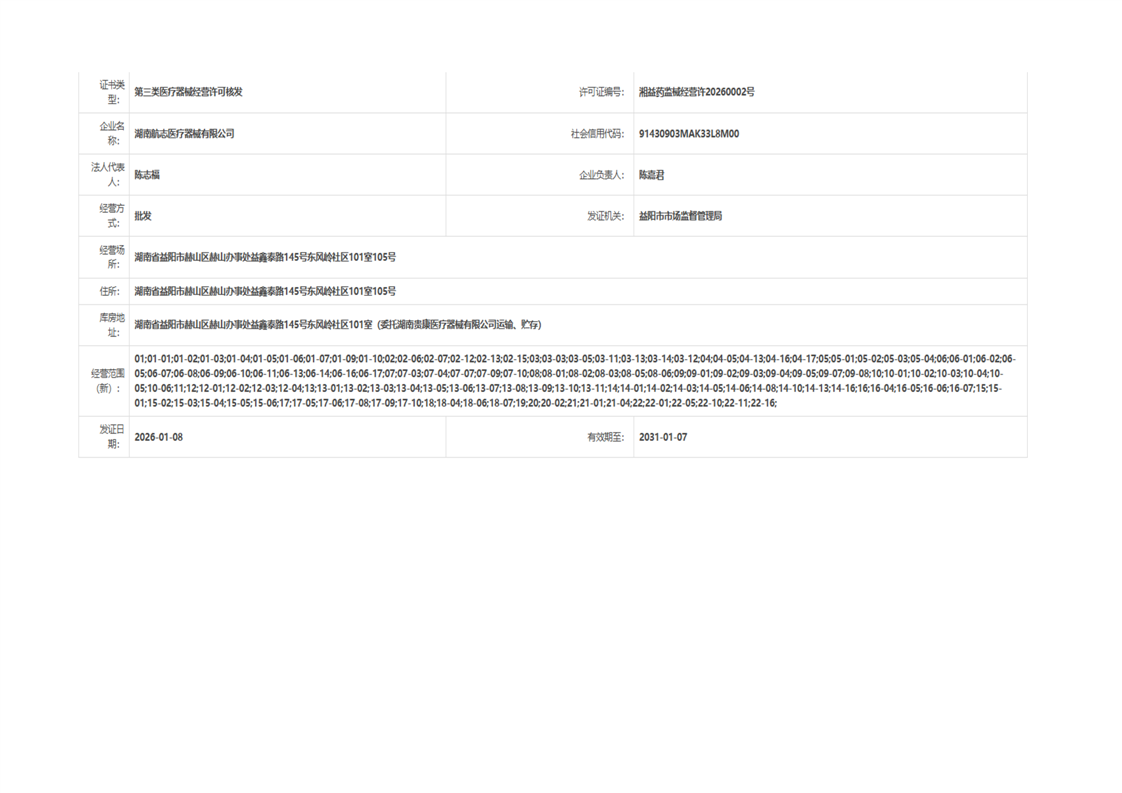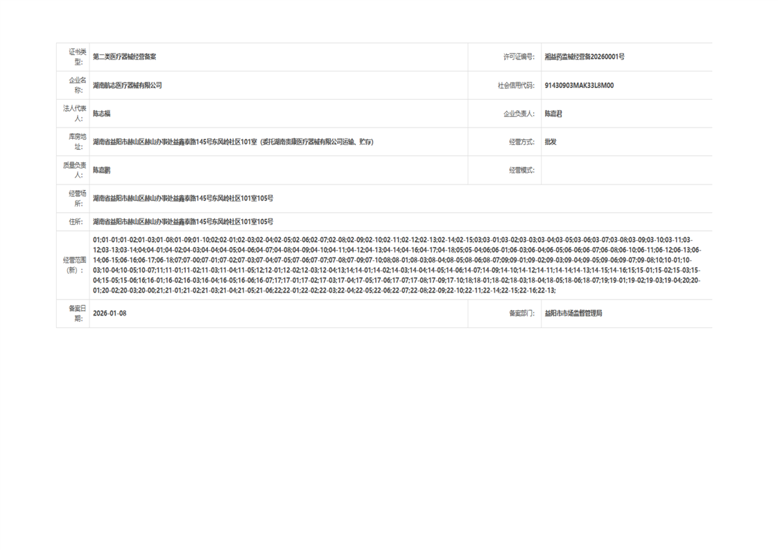 | 医疗器械生产经营许可(备案)信息公示(2026年第01号) |