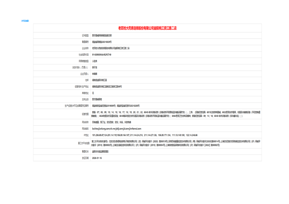 | 医疗器械生产经营许可(备案)信息公示(2026年第02号) |