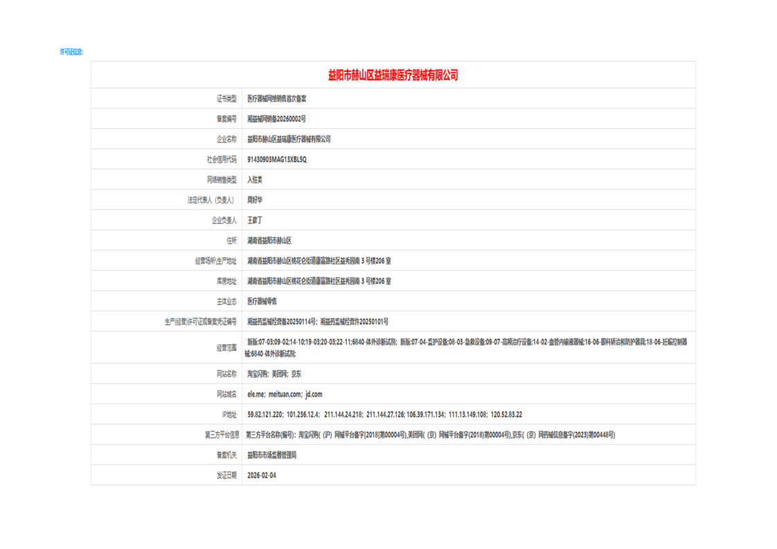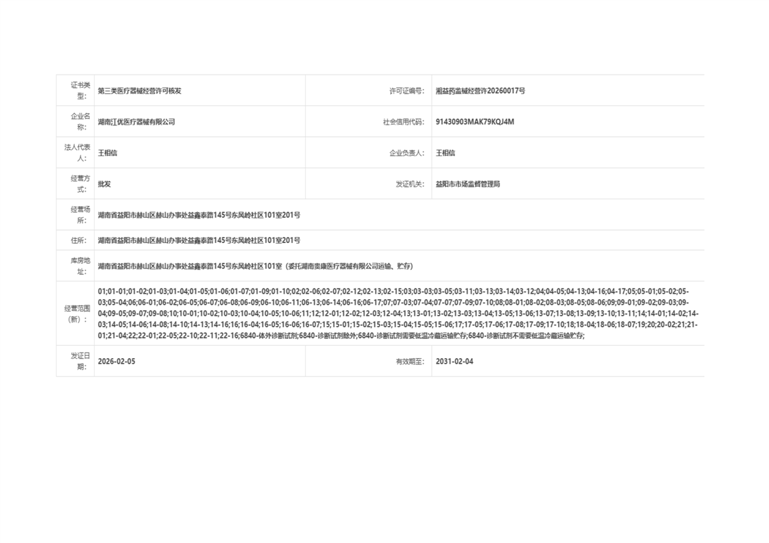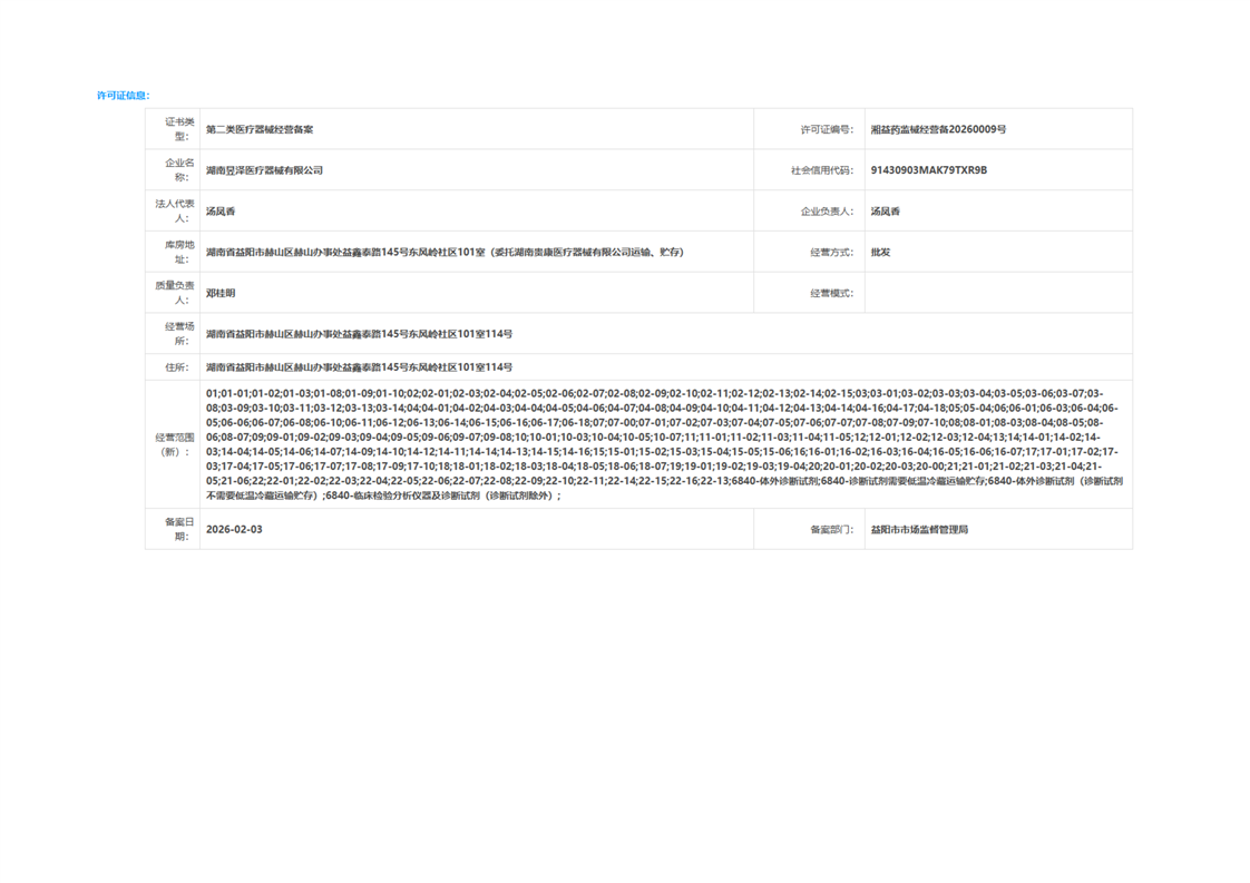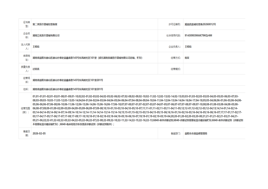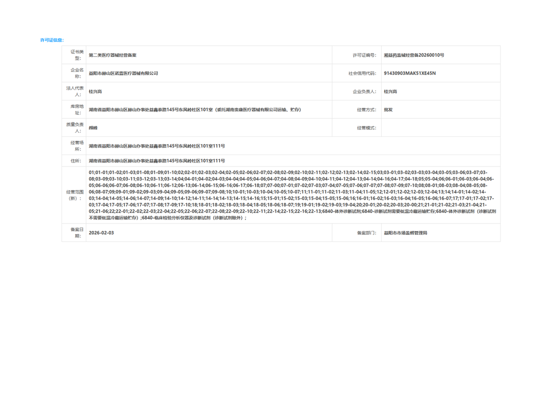 | 医疗器械生产经营许可(备案)信息公示(2026年第05号) |