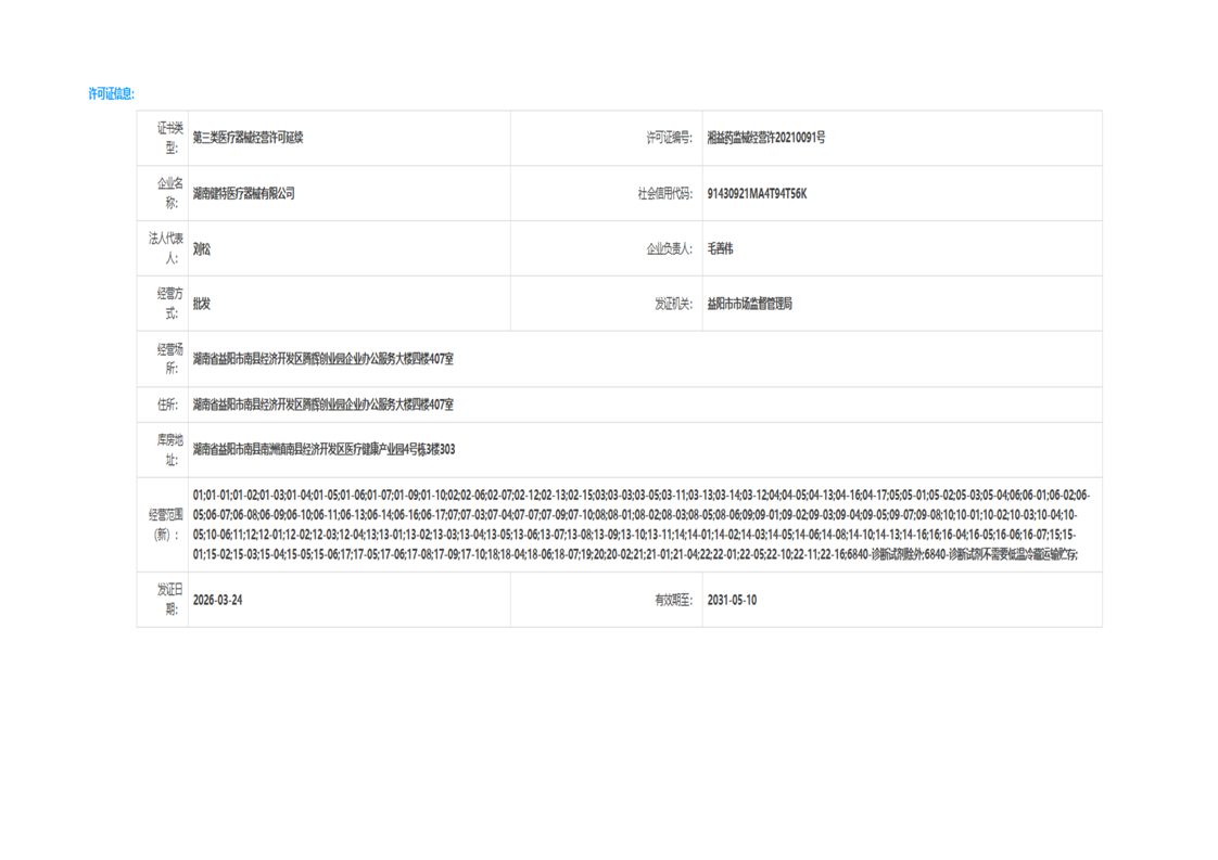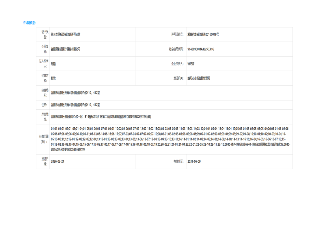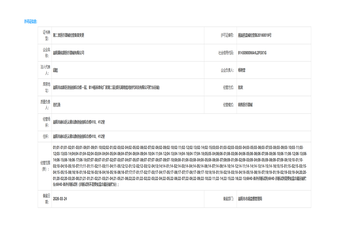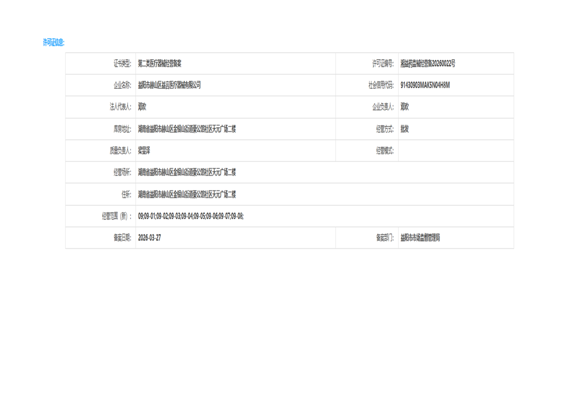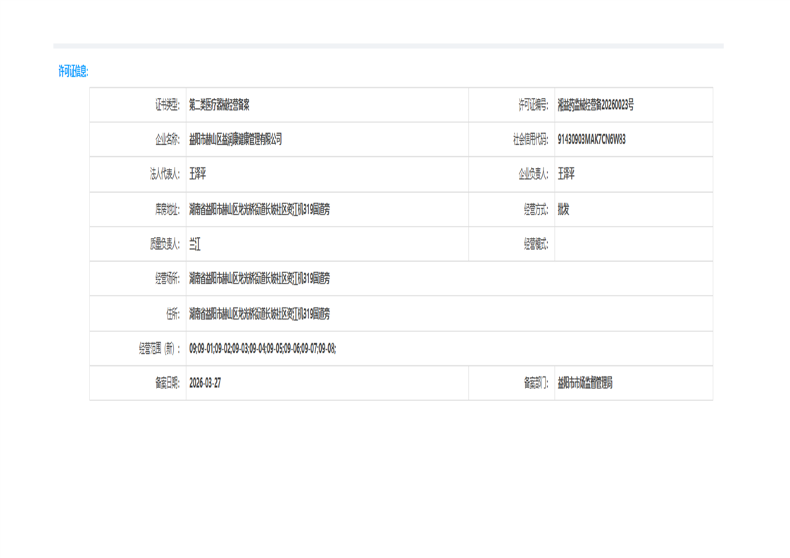 | 医疗器械生产经营许可(备案)信息公示(2026年第10号) |