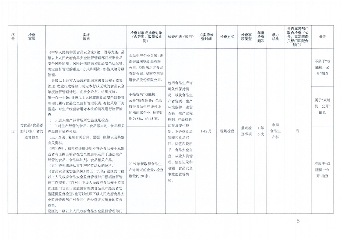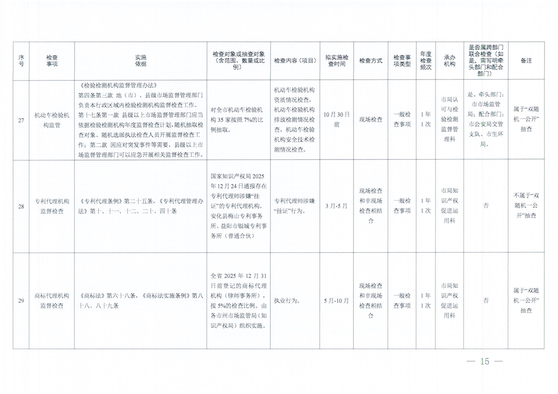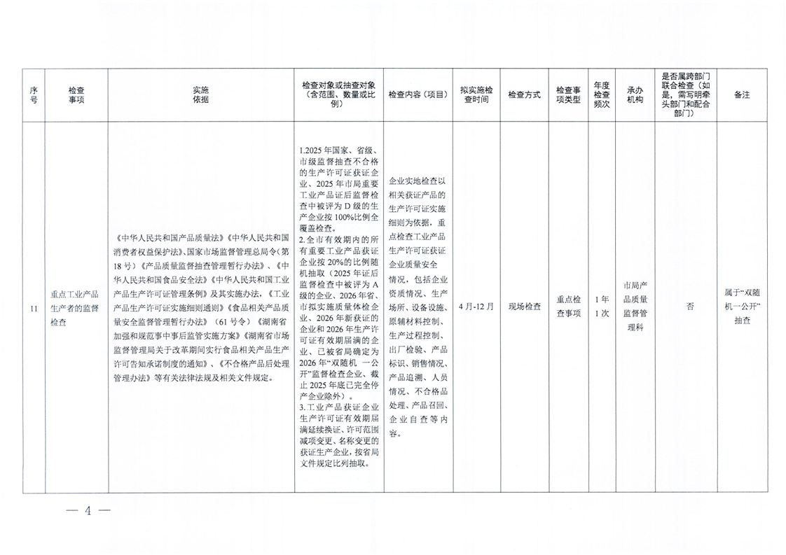 | 益阳市市场监督管理局2026年度涉企行政检查计划 |