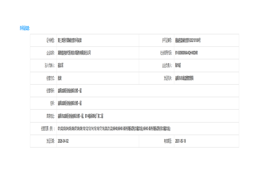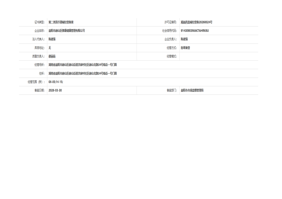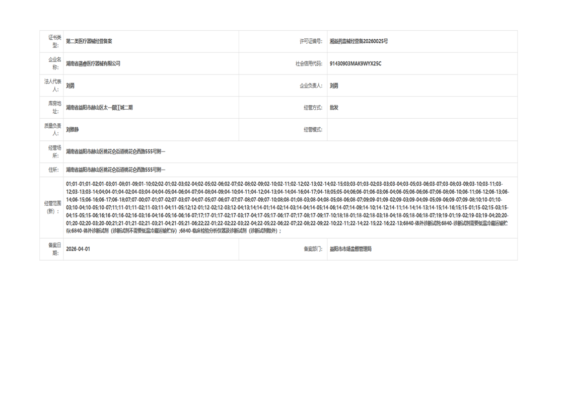 | 医疗器械生产经营许可(备案)信息公示(2026年第11号) |