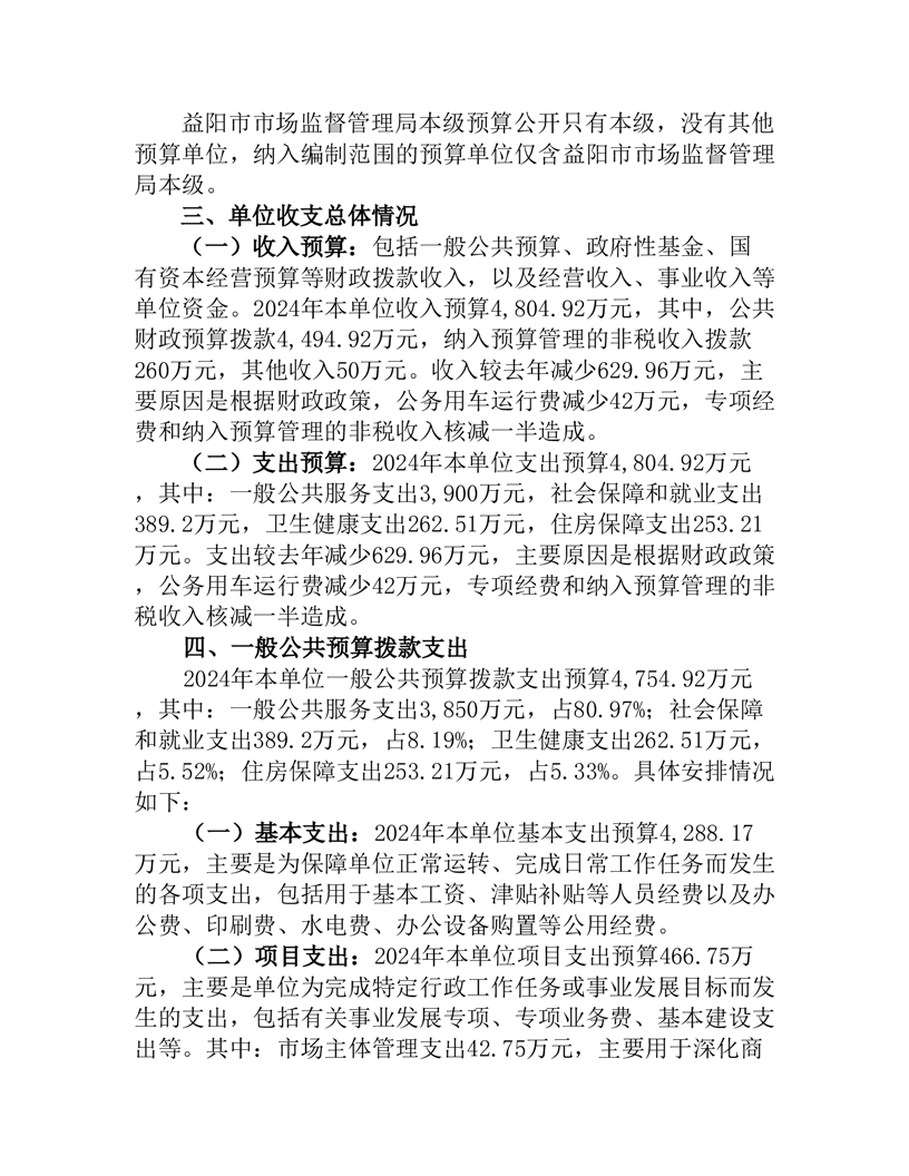 益阳市市场监督管理局本级2024年部门预算公开说明