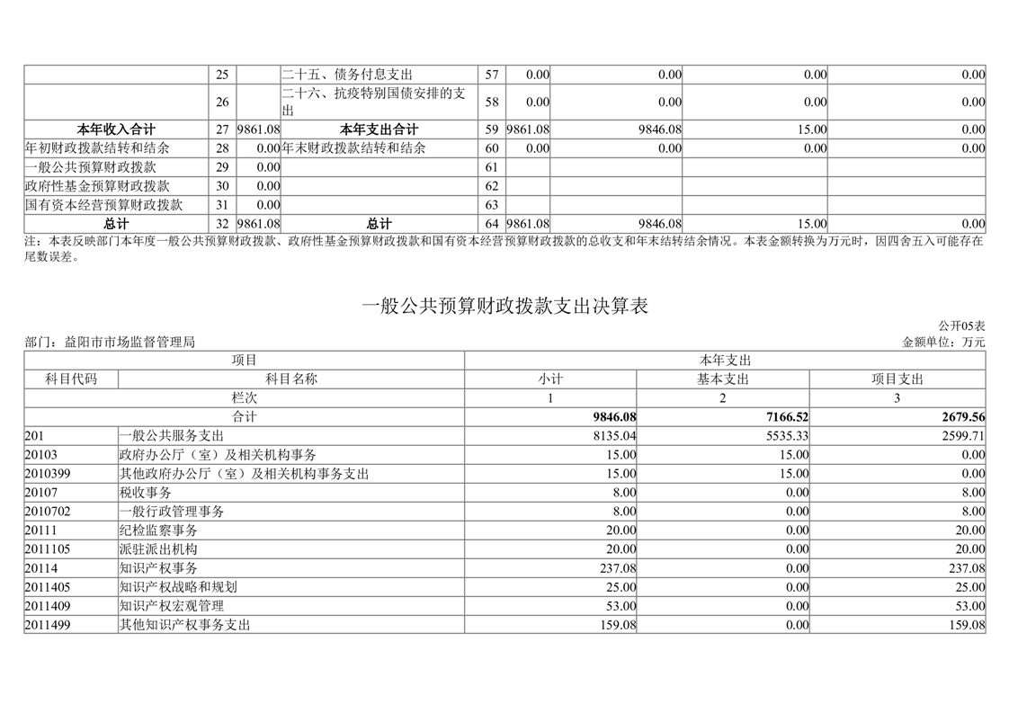 | 益阳市市场监督管理局2023年部门决算公开说明 |