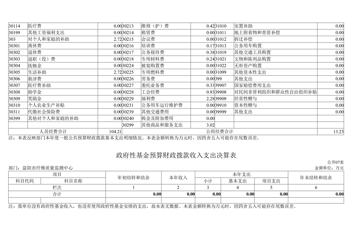 | 益阳市纤维质量监测中心2023年部门决算公开说明 |