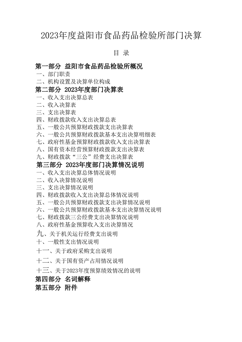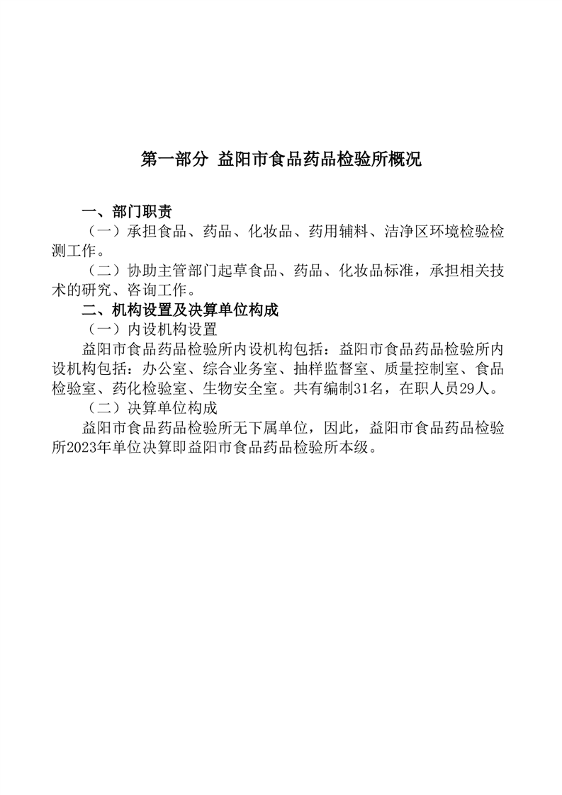 | 益阳市食品药品检验所2023年部门决算公开说明 |