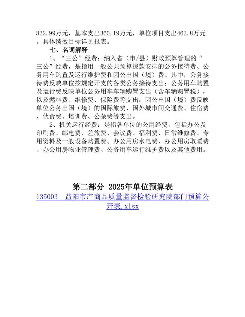 益阳市产商品质量监督检验研究院2025年部门预算公开说明
