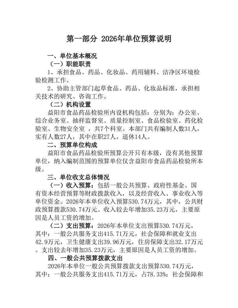 益阳市食品药品检验所2026年单位预算公开说明