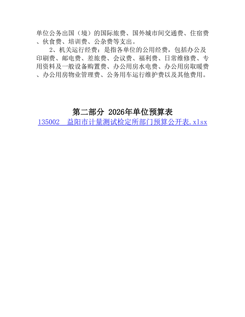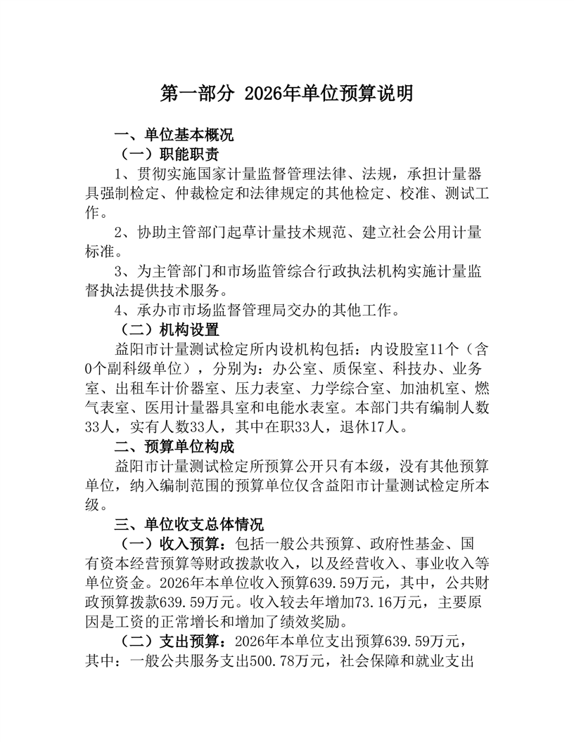 益阳市计量测试检定所2026年单位预算公开说明