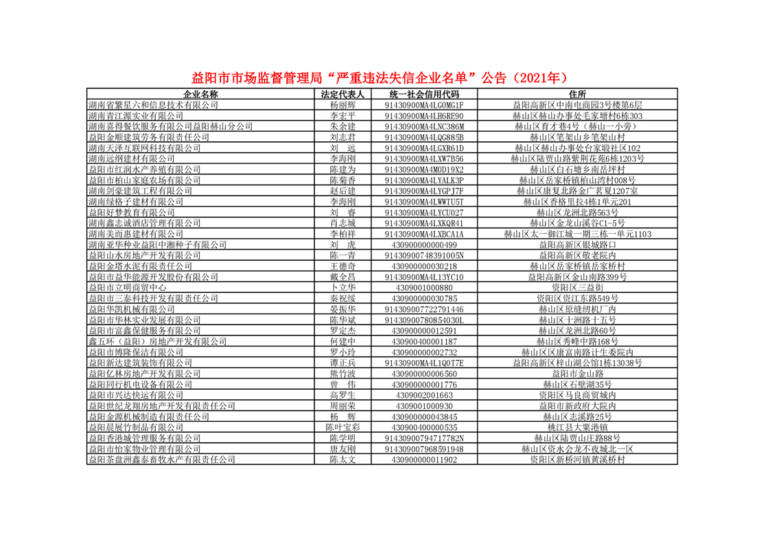 | 2021年度“严重违法失信企业名单”公告 |