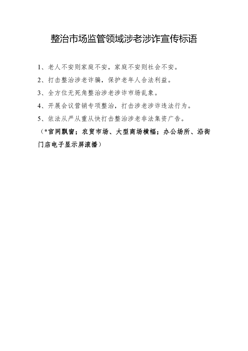 | 整治市场监管领域涉老涉诈宣传标语 |