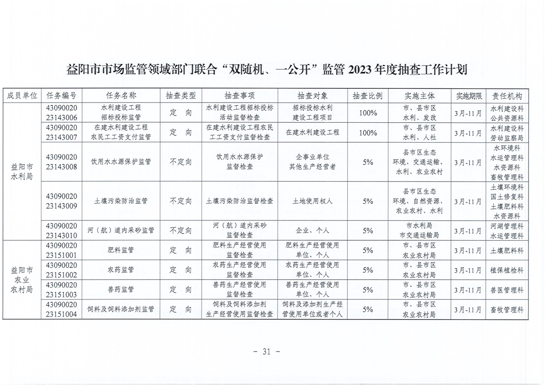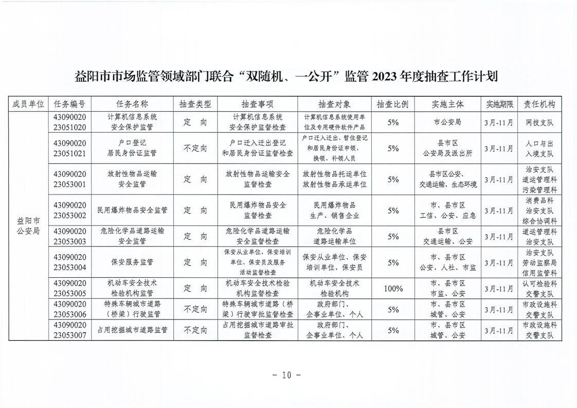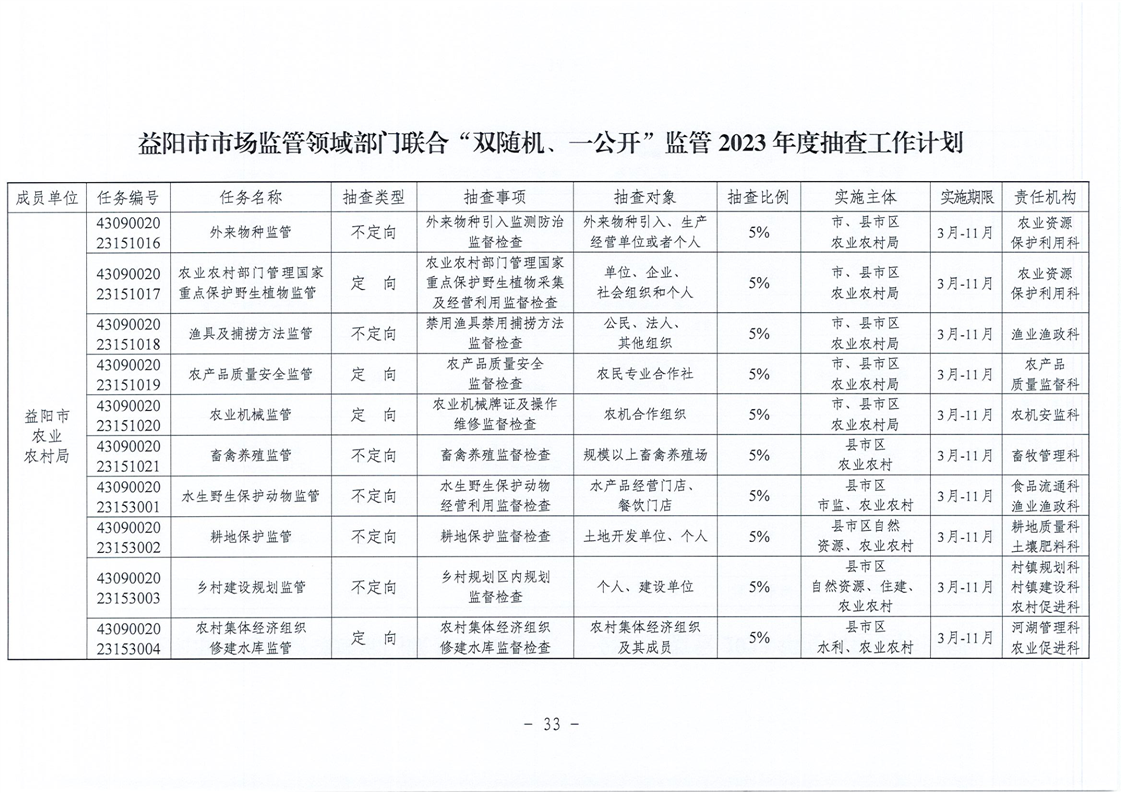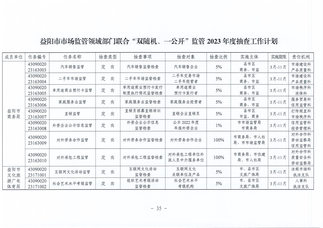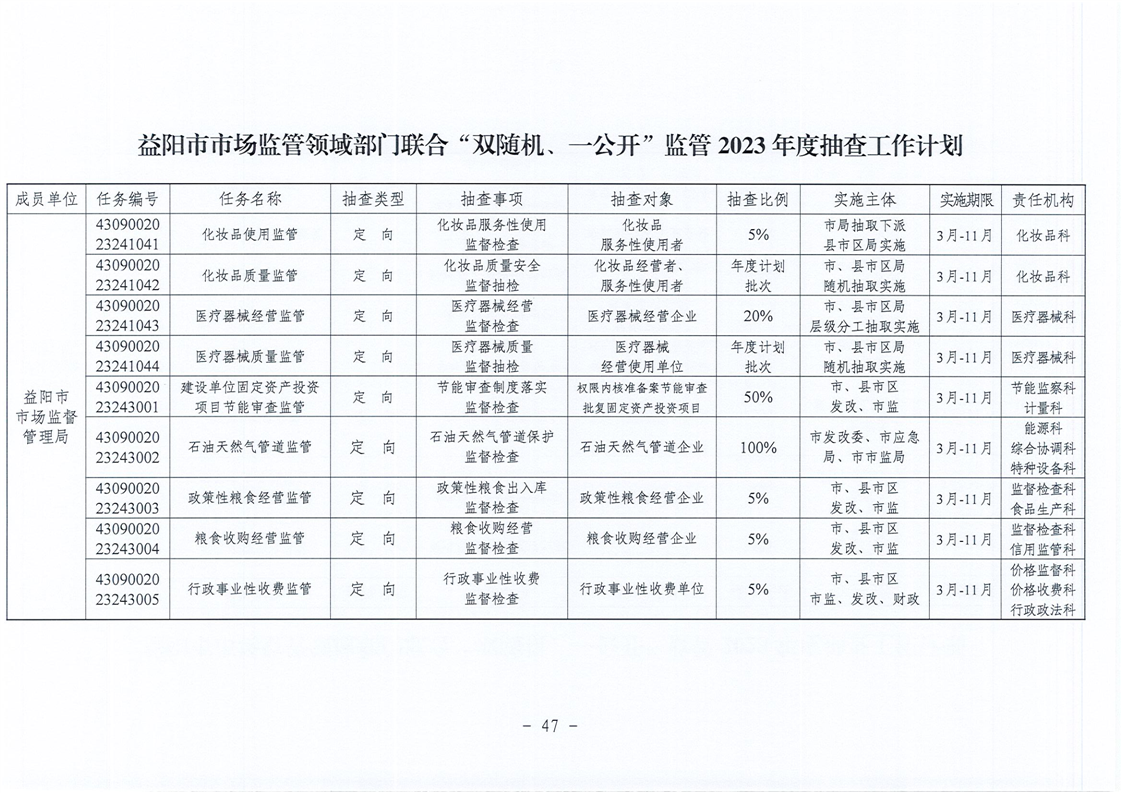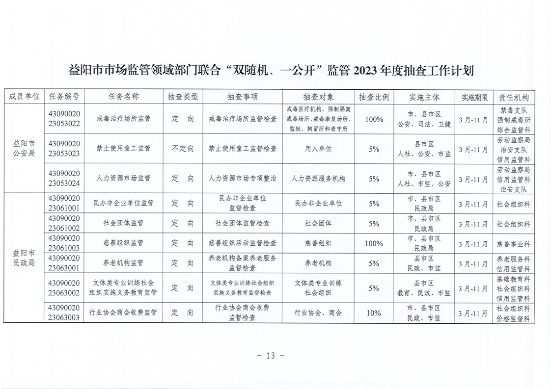 | 关于印发《益阳市市场监管领域部门联合“双随机、一公开”监管2023年度抽查工作计划》的通知 |