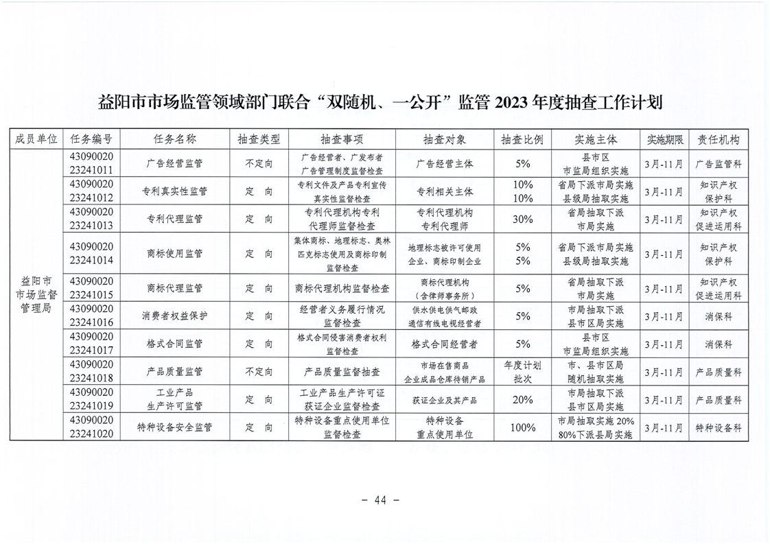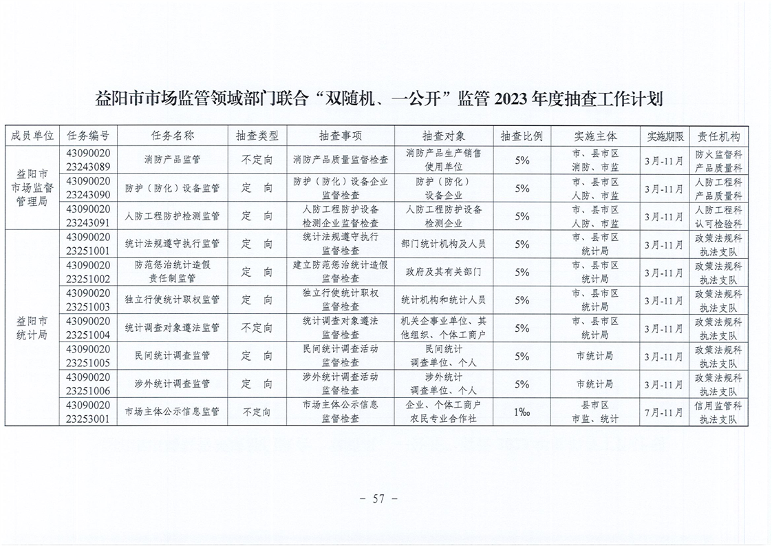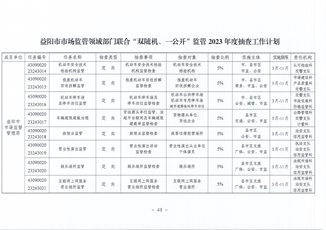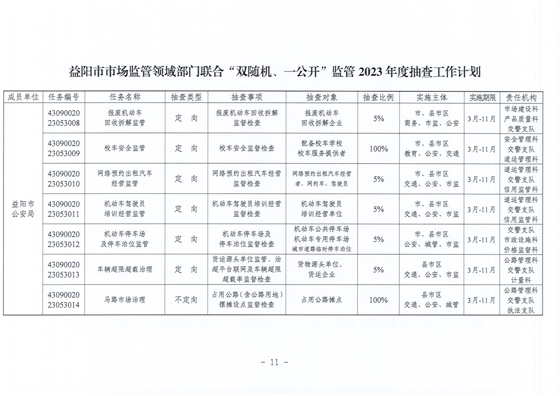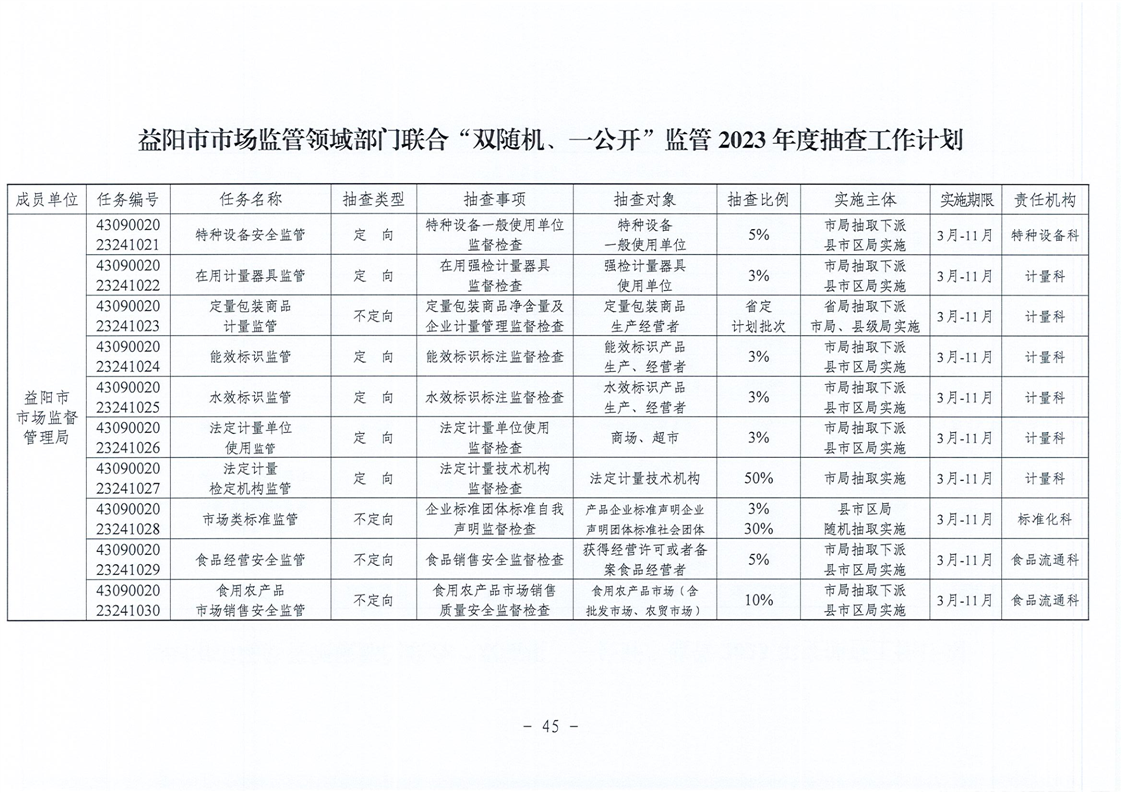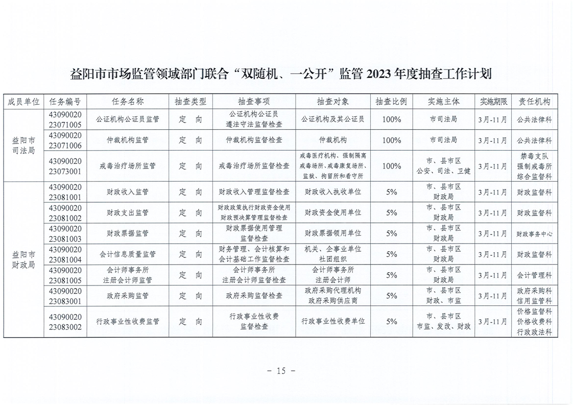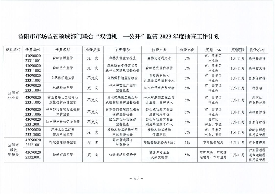 | 关于印发《益阳市市场监管领域部门联合“双随机、一公开”监管2023年度抽查工作计划》的通知 |