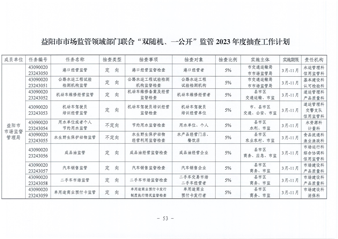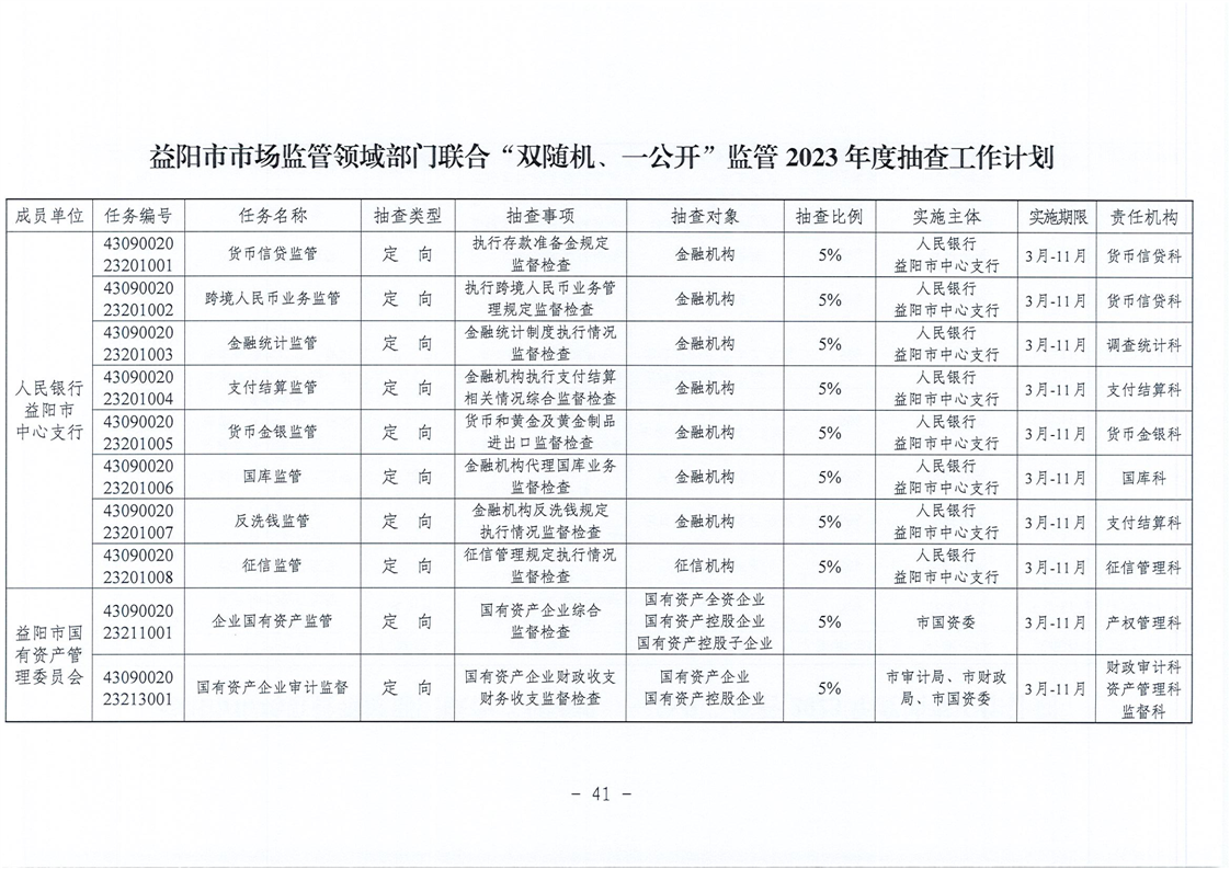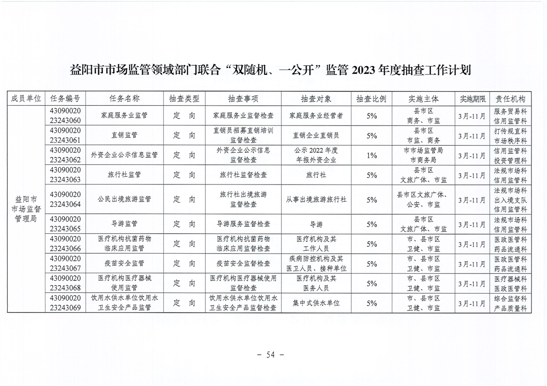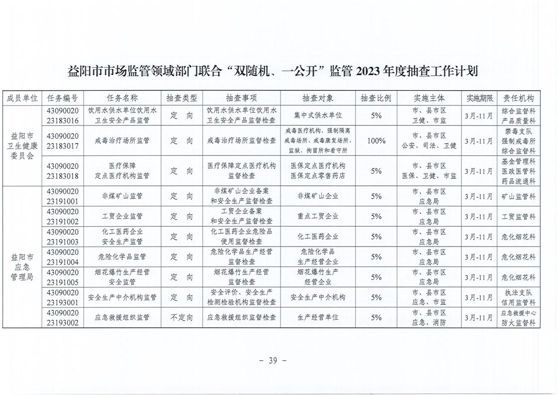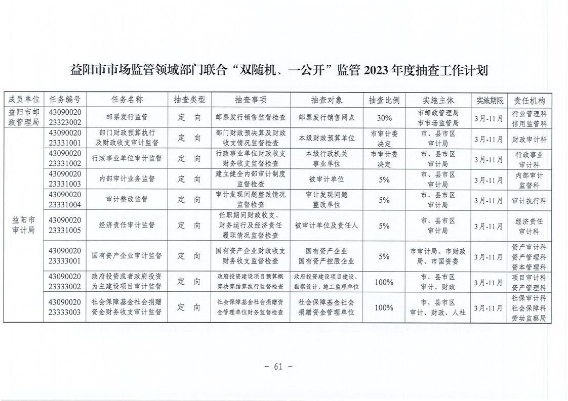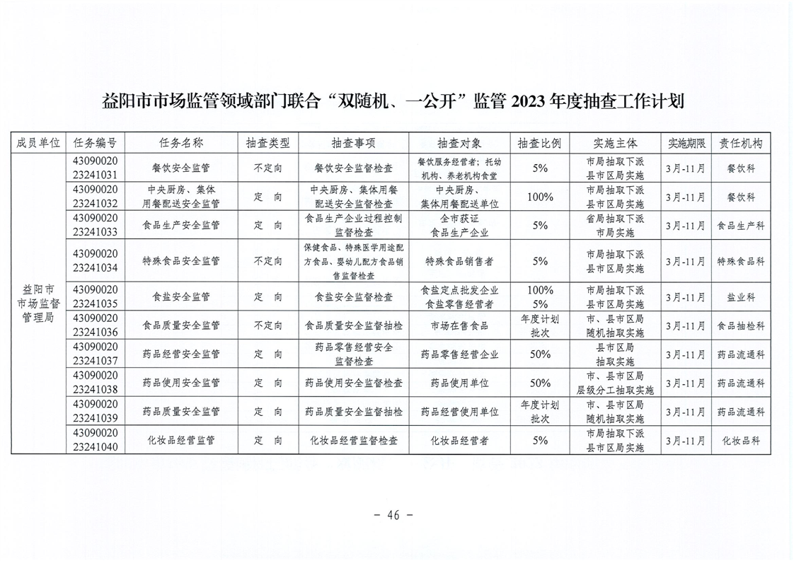 | 关于印发《益阳市市场监管领域部门联合“双随机、一公开”监管2023年度抽查工作计划》的通知 |
