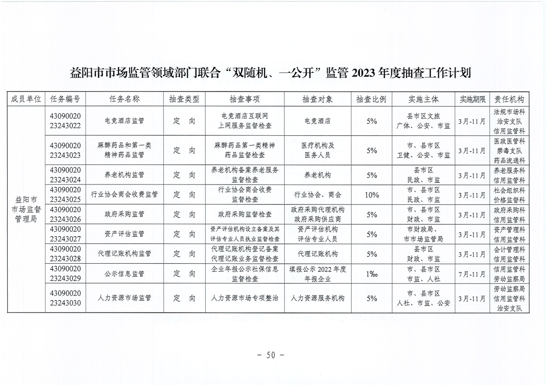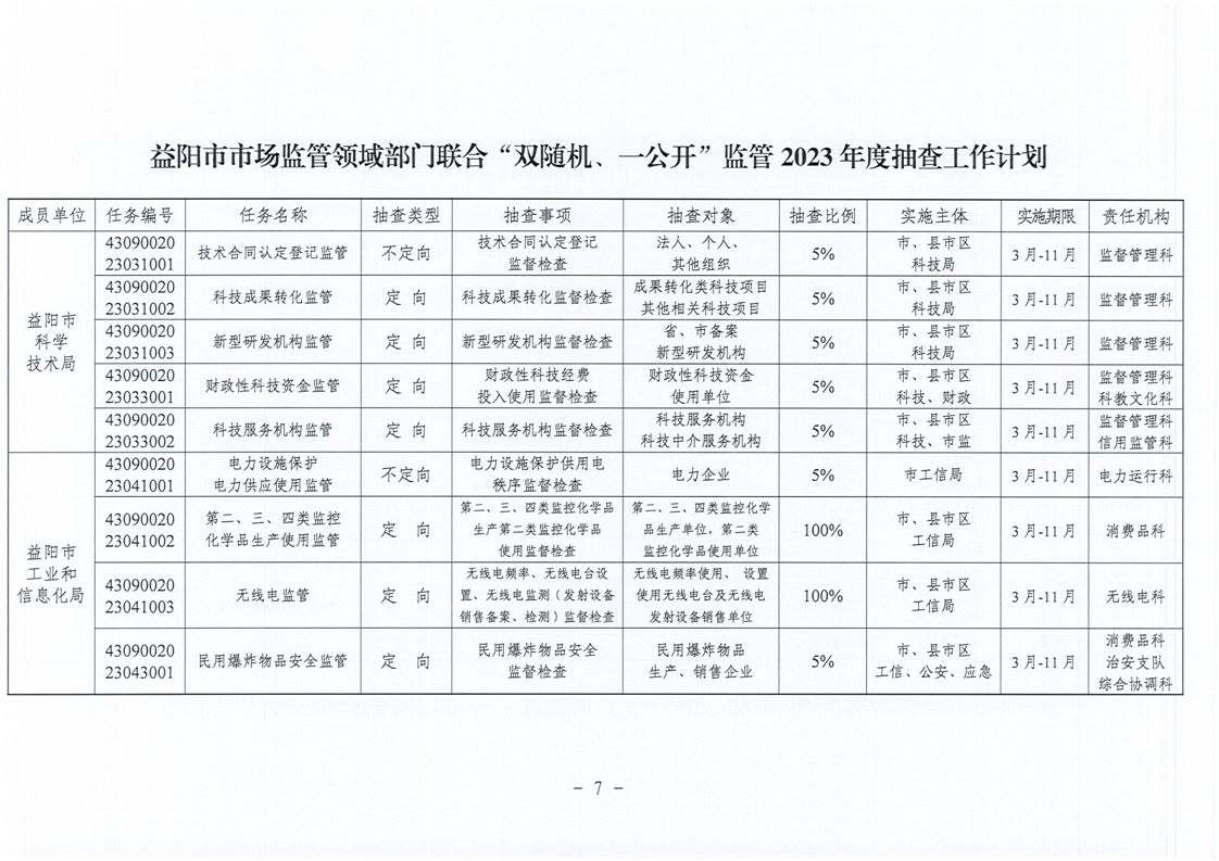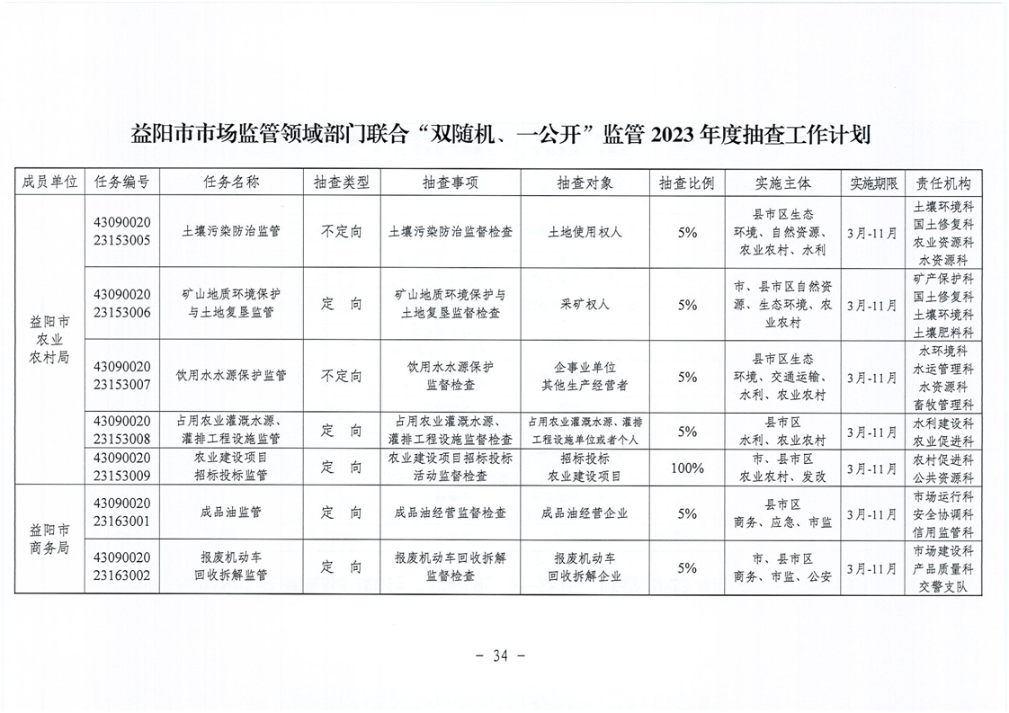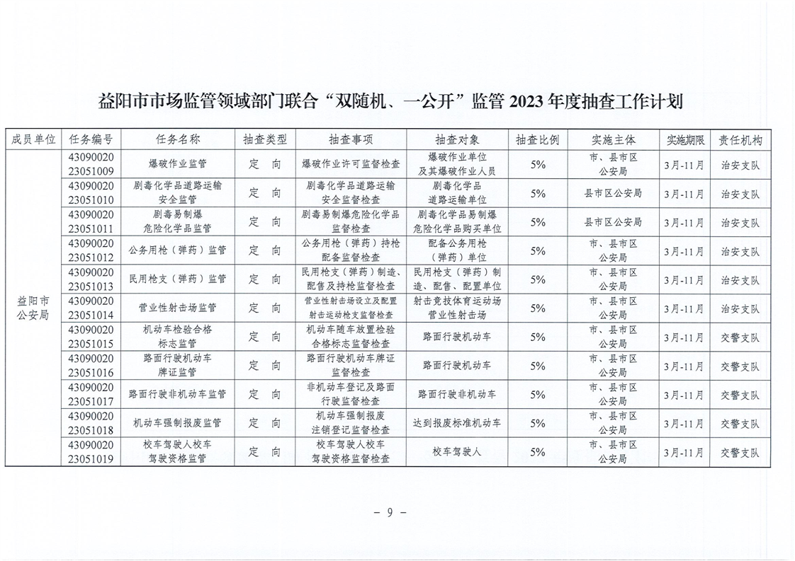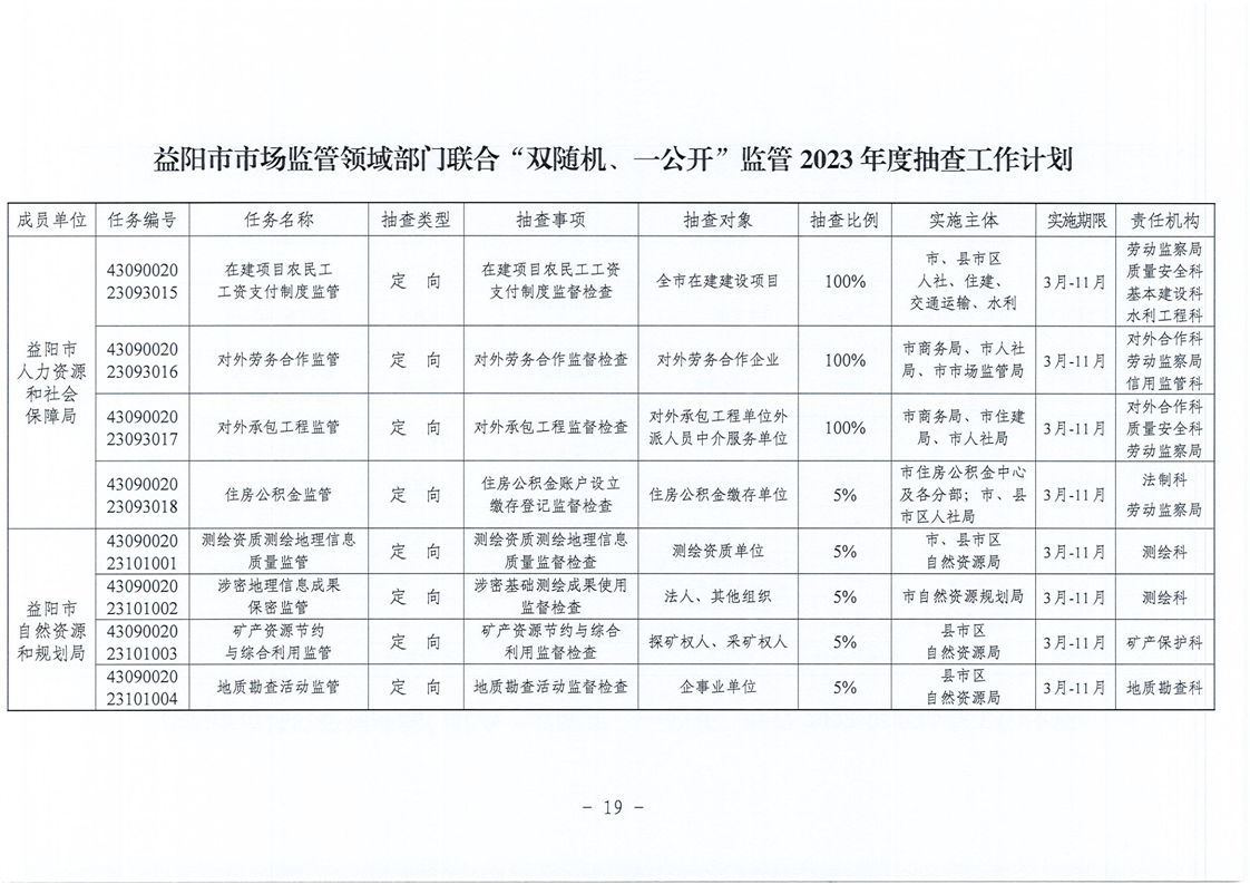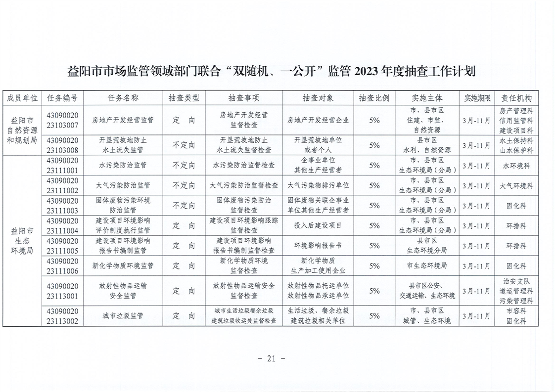 | 关于印发《益阳市市场监管领域部门联合“双随机、一公开”监管2023年度抽查工作计划》的通知 |