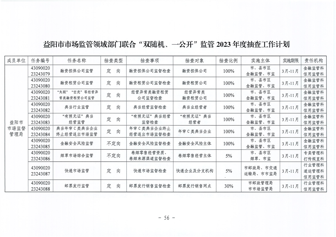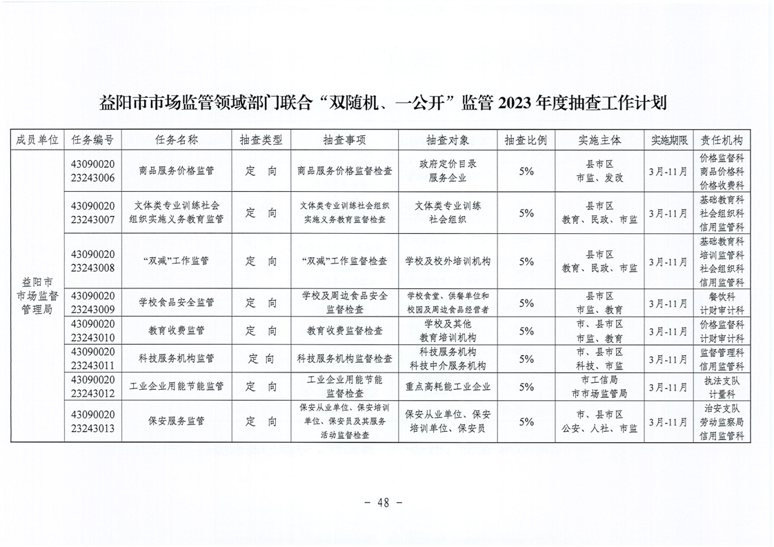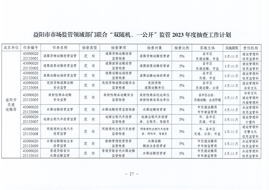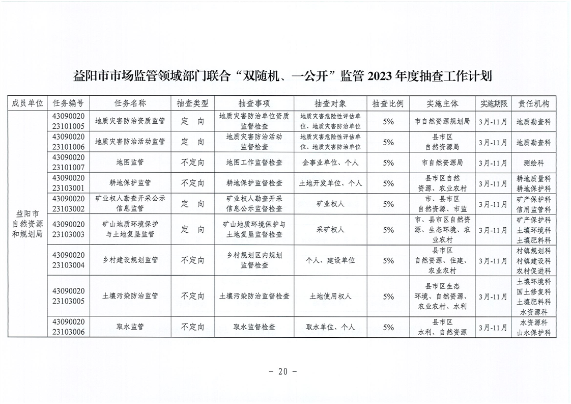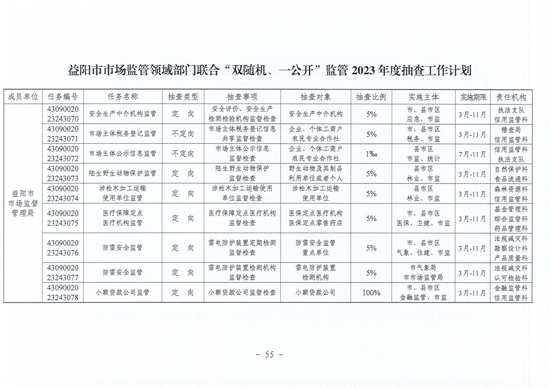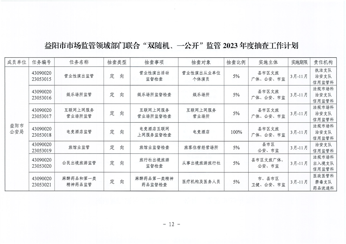 | 关于印发《益阳市市场监管领域部门联合“双随机、一公开”监管2023年度抽查工作计划》的通知 |