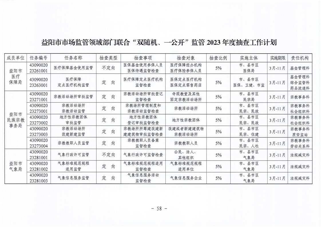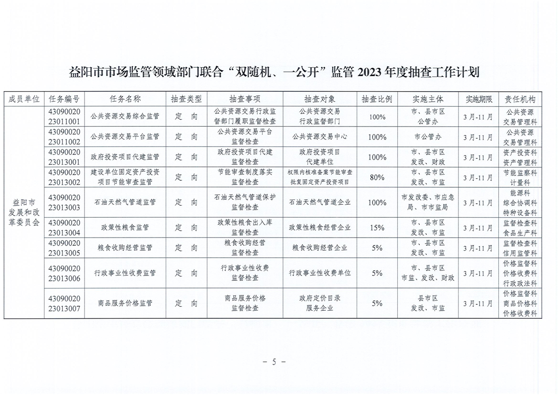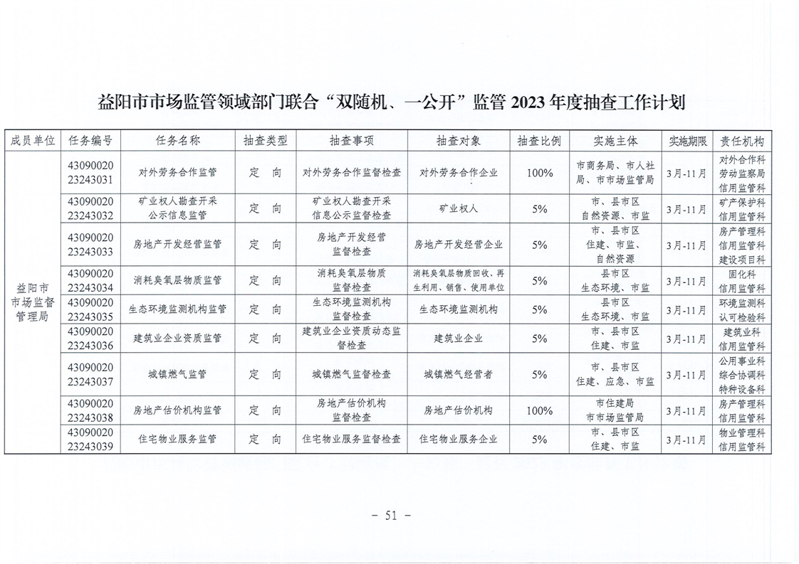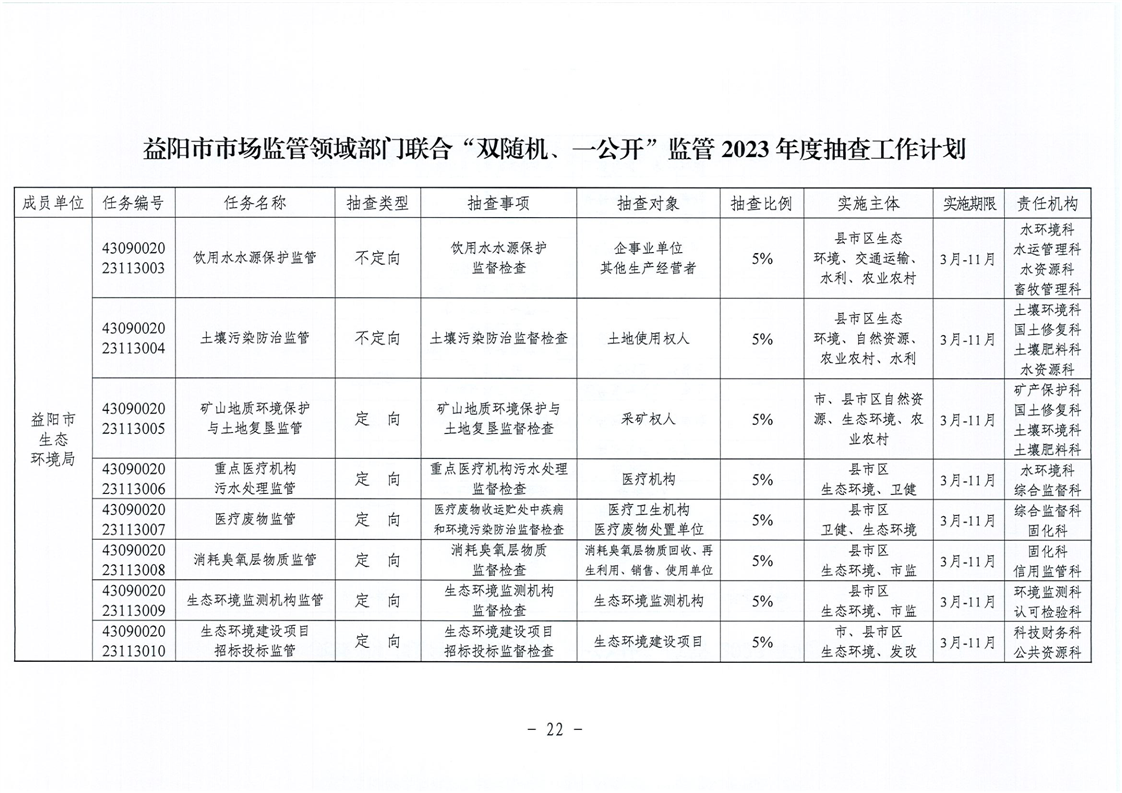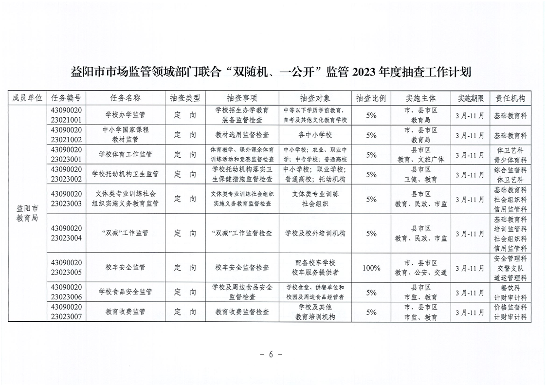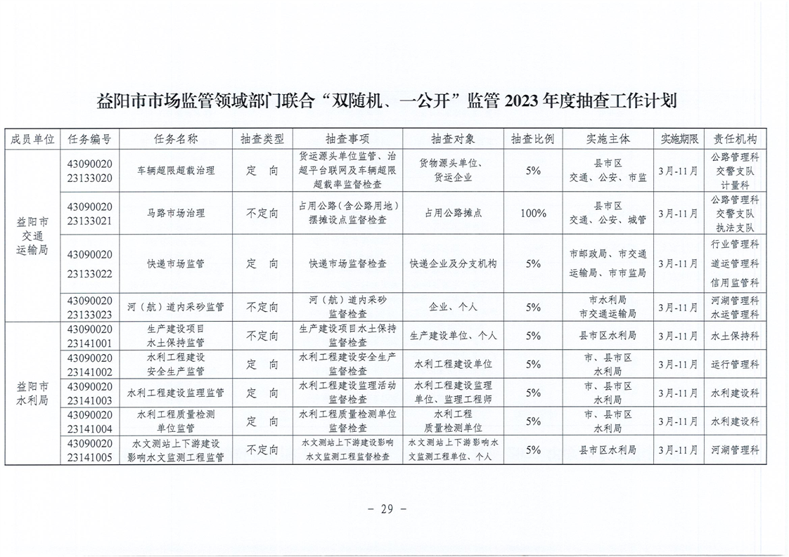 | 关于印发《益阳市市场监管领域部门联合“双随机、一公开”监管2023年度抽查工作计划》的通知 |