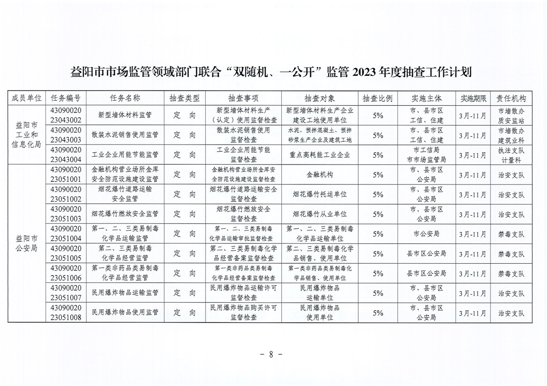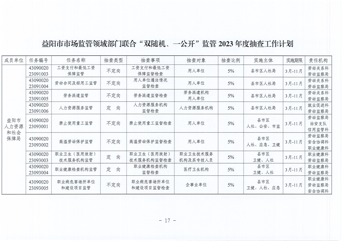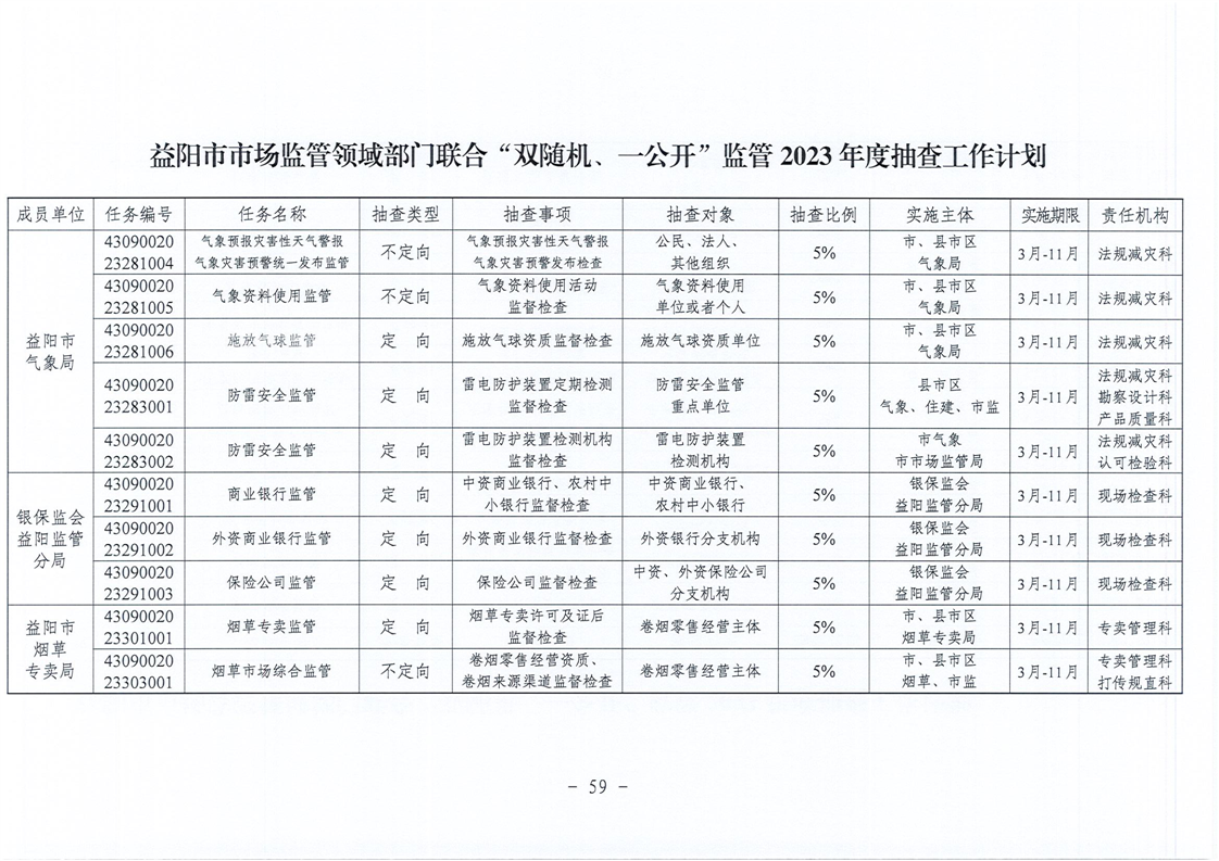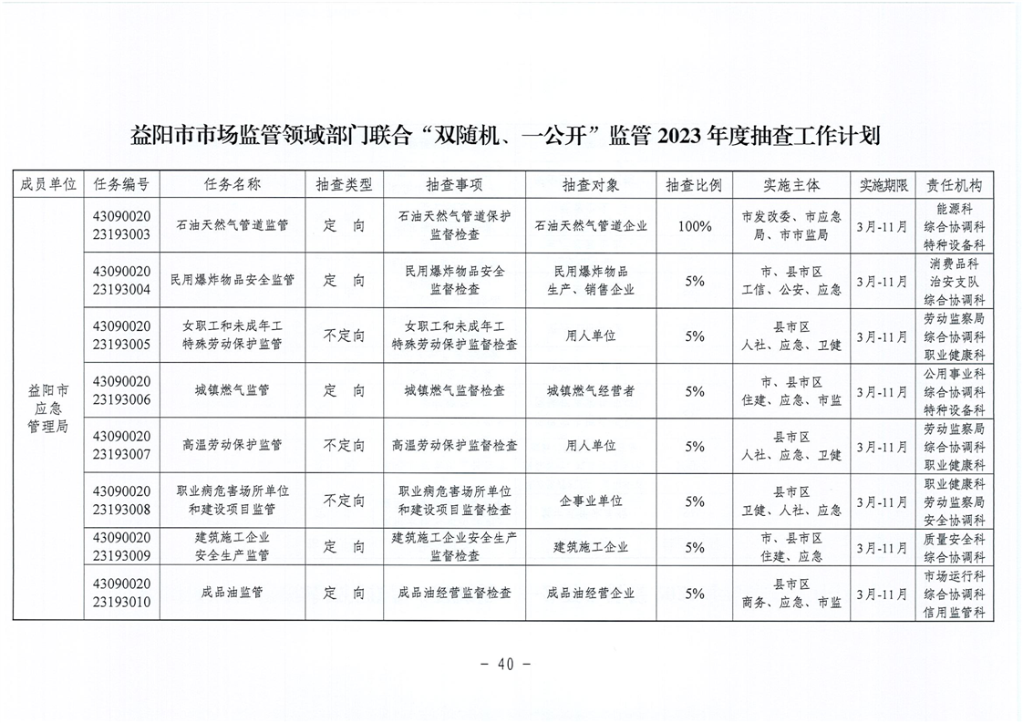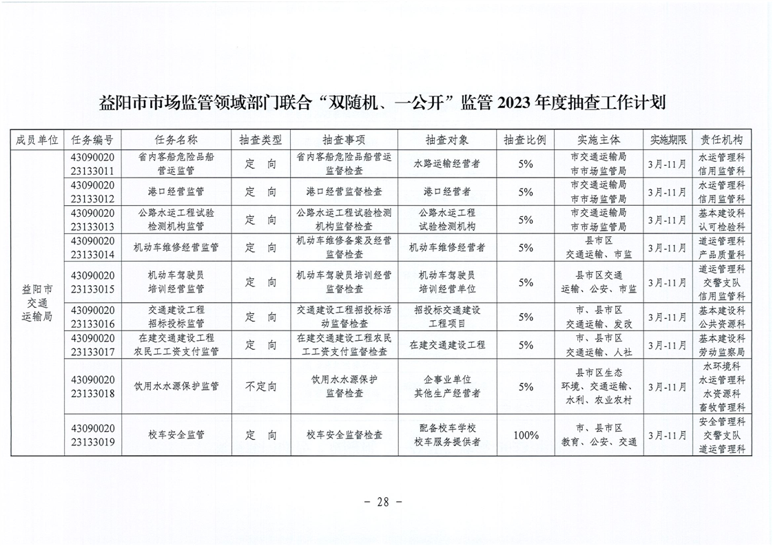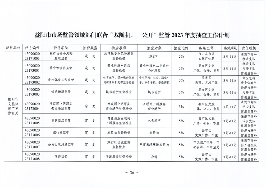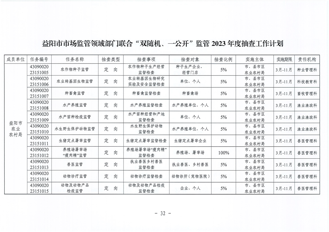 | 关于印发《益阳市市场监管领域部门联合“双随机、一公开”监管2023年度抽查工作计划》的通知 |