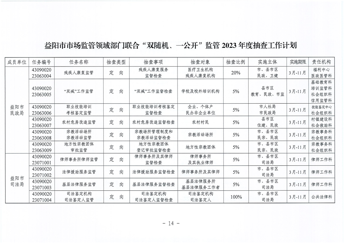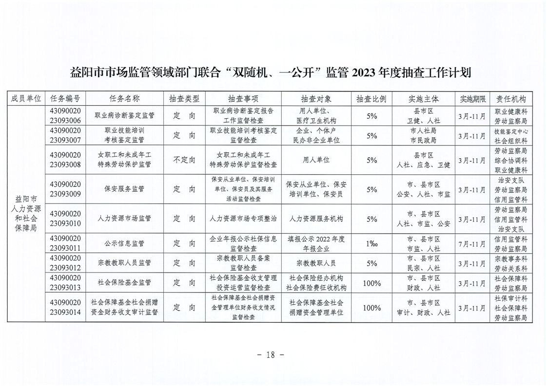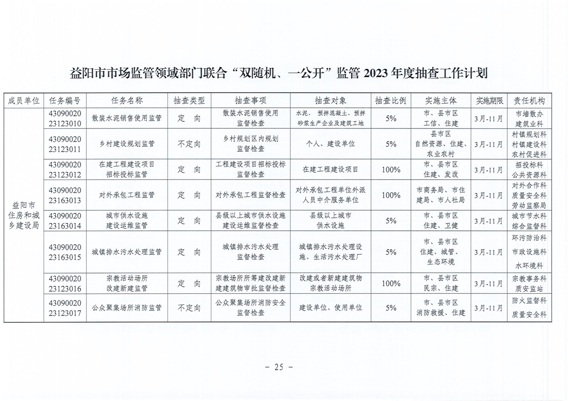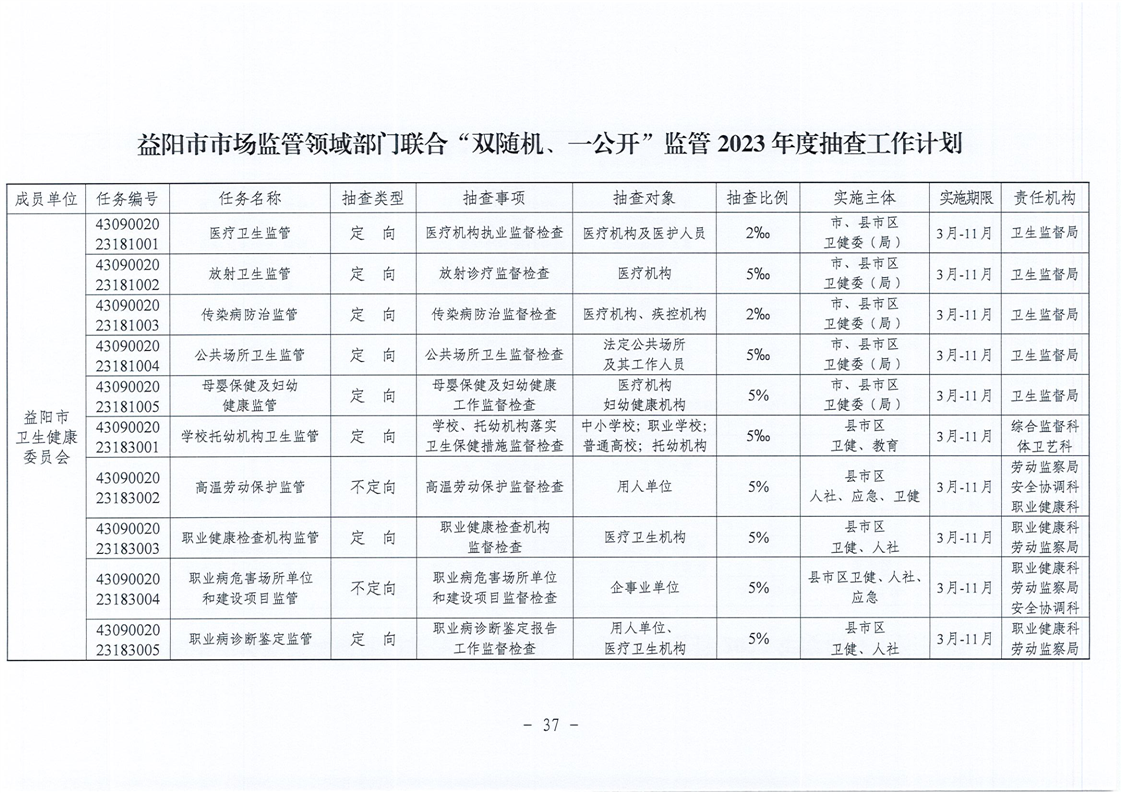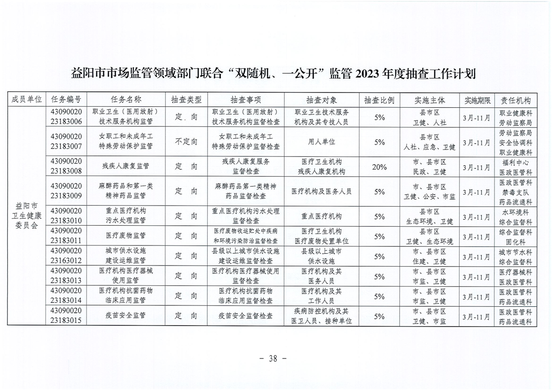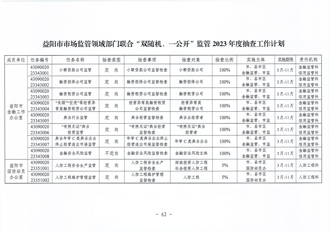 | 关于印发《益阳市市场监管领域部门联合“双随机、一公开”监管2023年度抽查工作计划》的通知 |