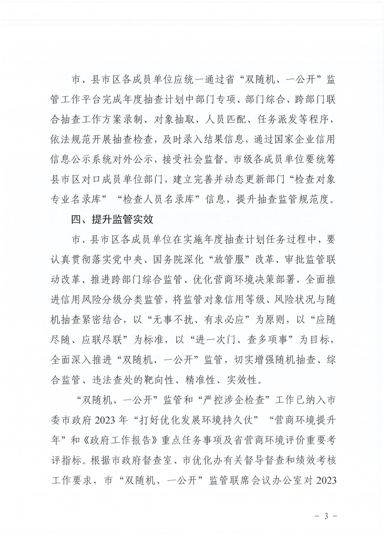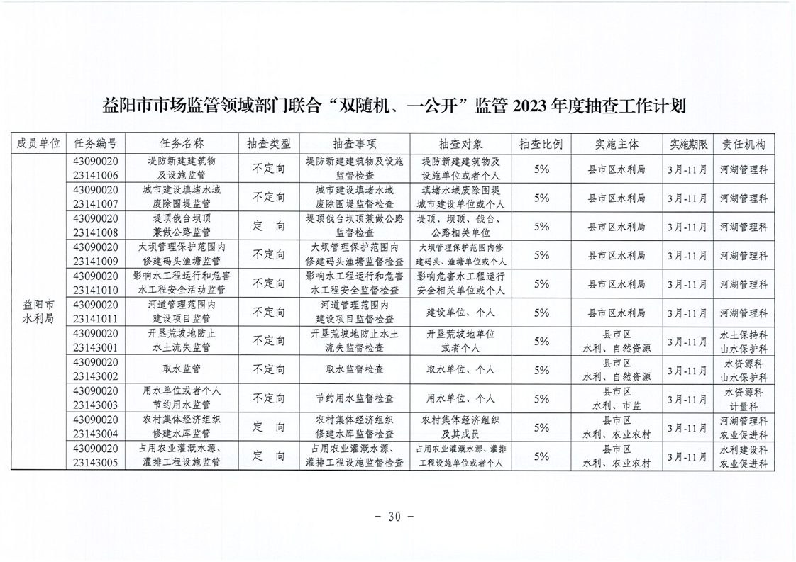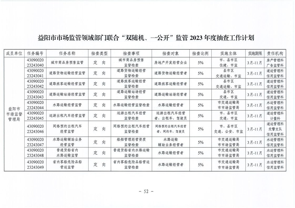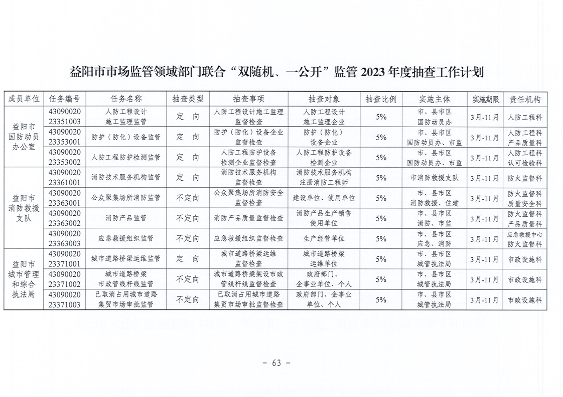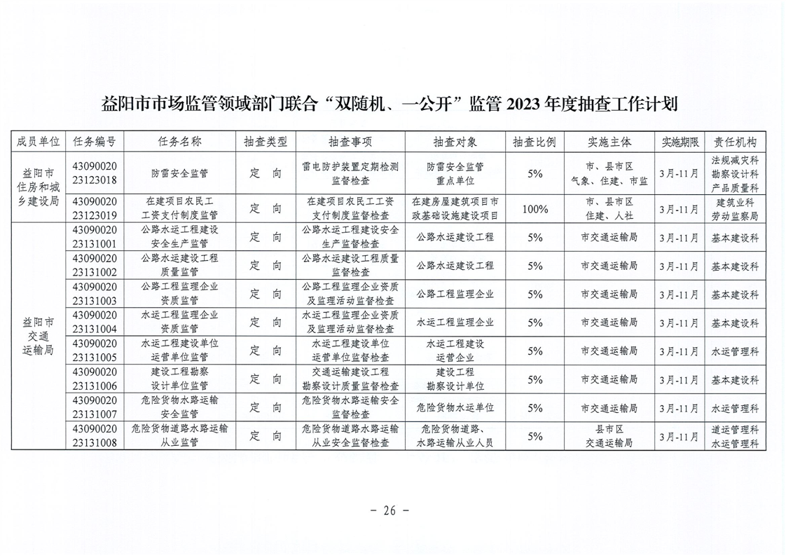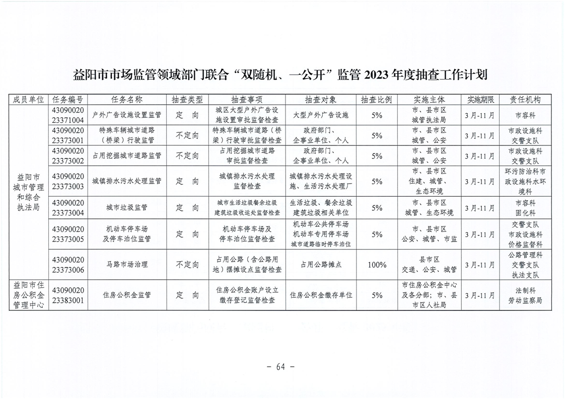 | 关于印发《益阳市市场监管领域部门联合“双随机、一公开”监管2023年度抽查工作计划》的通知 |