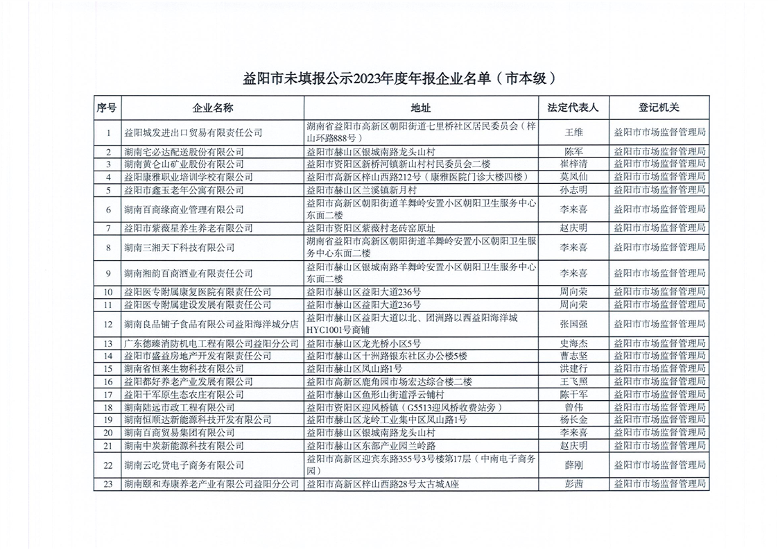 | 益阳市未填报公示2023年度年报企业名单(市本级) |