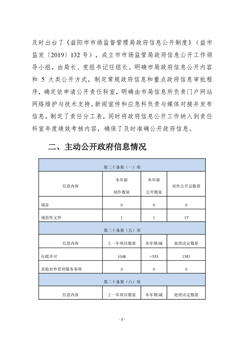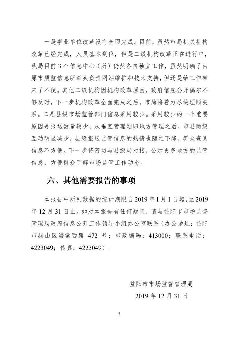 | 益阳市市场监督管理局2019年度政府信息公开工作年度报告 |