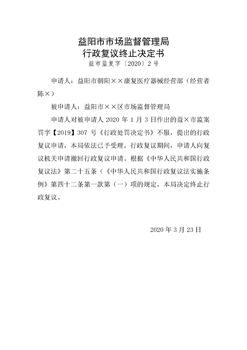 | 益市监复字〔2020〕2号 |