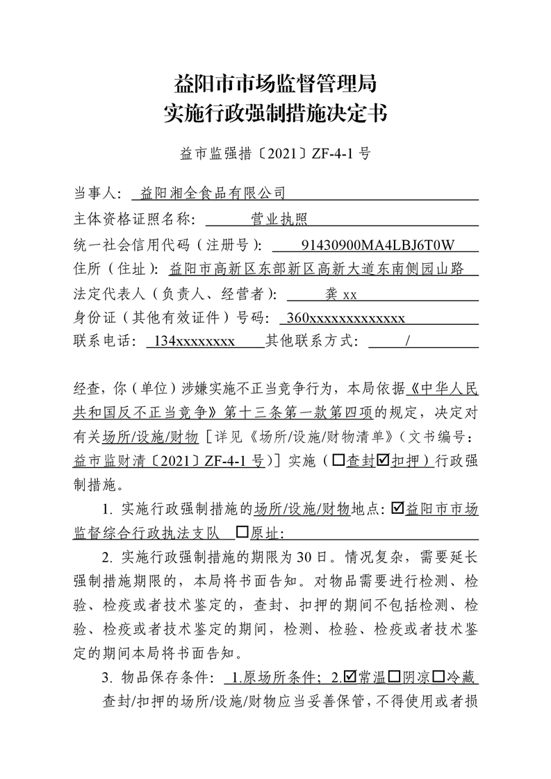 | 益市监强措[2021]ZF-4-1号 |