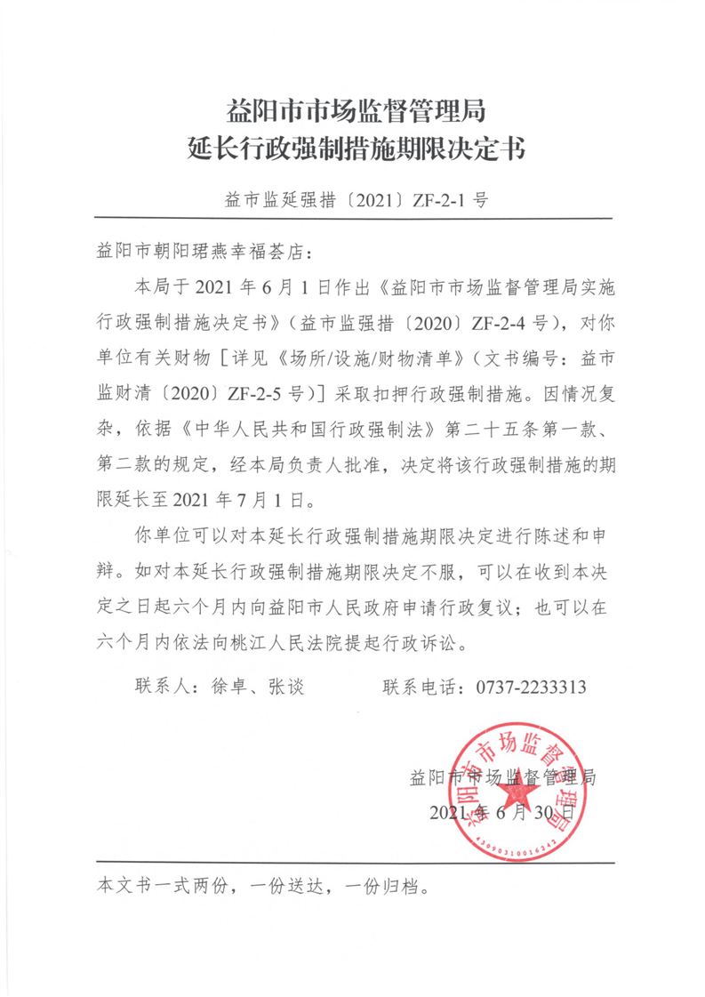 | 益市监延强措 [2021] ZF-2-1 号 |
