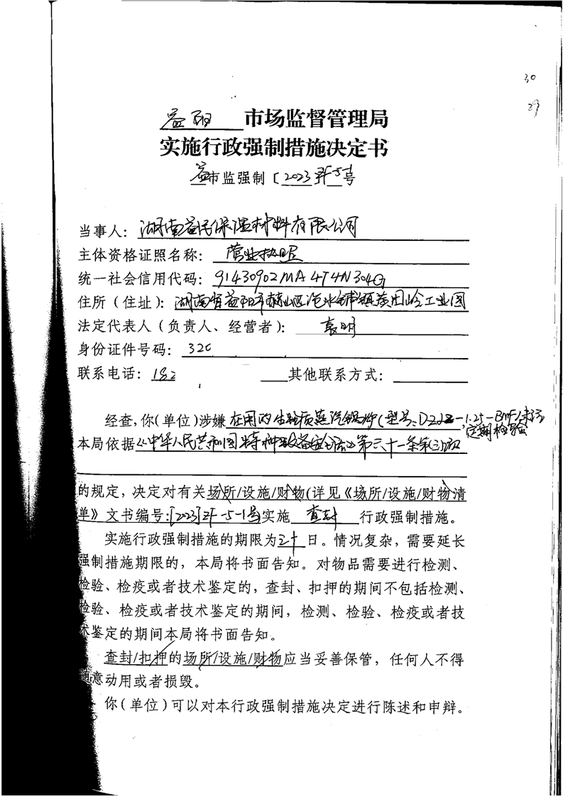 | 益市监强制 [2023] ZF-5-1号 |