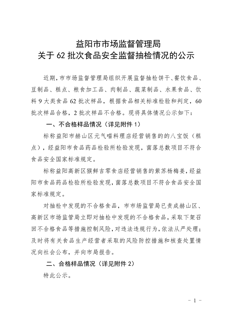 | 关于2022年2月份62批次食品安全监督抽检情况的公示 |